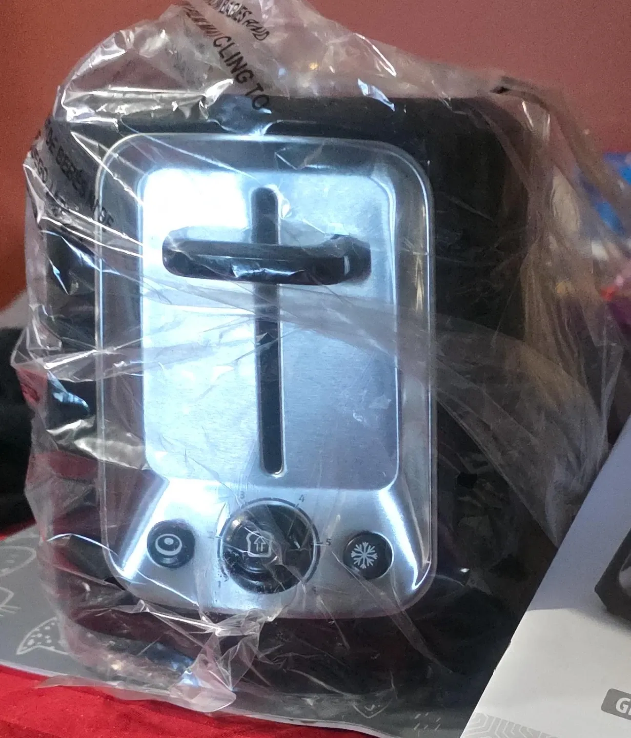 Selling a brand new Toastmaster 2-slice toaster! It's still in its original packaging and has never been used. The box includes the toaster itself. This toaster has settings for bagels and frozen items