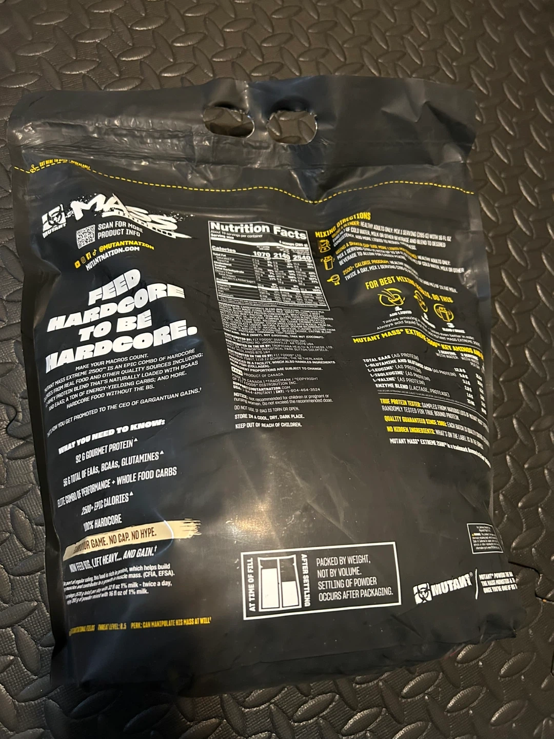 Selling a 12lb bag of Mutant Mass Extreme 2500, a muscle mass gainer. Received last week and haven’t opened. It's designed to help you build muscle and gain mass with its high-calorie and protein content. Perfect for anyone looking to bulk up!