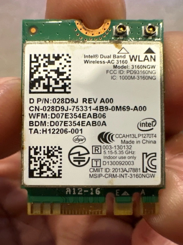 This is a used Intel Dual Band Wireless-AC 3160 WLAN card, Model 3160NGW, pulled from a working laptop. It supports 802.11ac Wi-Fi and Bluetooth 4.0, making it perfect for upgrading or repairing your wireless connectivity. Here are some specifications: