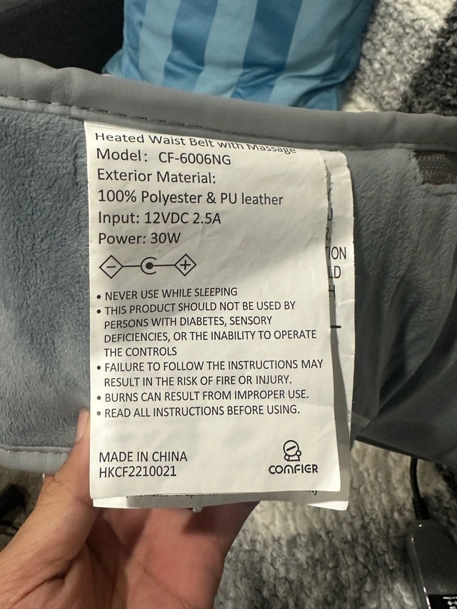 Relax and soothe your muscles with this Comfier heated waist belt massager! This is a gently used massage belt with multiple settings for intensity and heat. Perfect for unwinding after a long day. Specifications: * Model: CF-6006NG * Exterior Material: 100% Polyester & PU leather * Input: 12VDC 2.5A * Power: 30W This amazing massager is looking for a new home to bring joy and relaxation! But remember, if the ad is still up, it's still available!