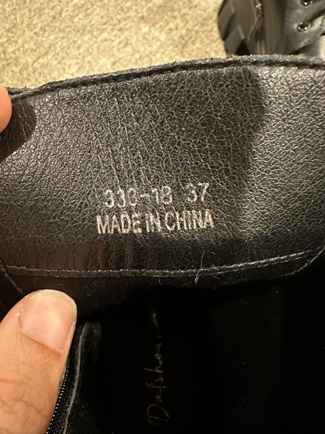 These are Dalshoes black combat boots with a lace-up front and chunky lug sole, perfect for adding an edgy touch to your wardrobe. These boots are in used condition, showing some signs of wear, as you can see in the pictures. Features: * Lace-up closure with side zipper * Chunky lug sole for added traction * Size 37 (approximately US 7) I think a fair price for these boots is $40. If the ad is up, the item is available!