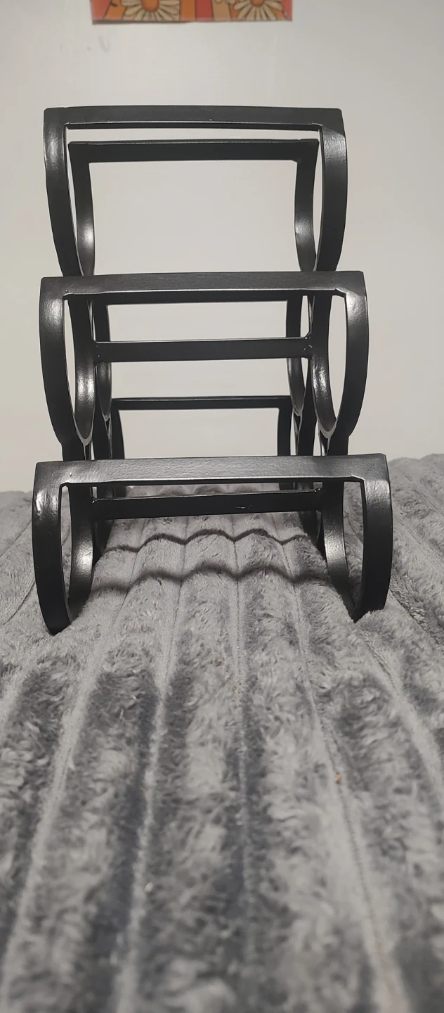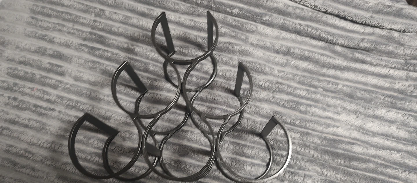 Selling a stylish black metal wine rack! It's in great shape and ready to hold up to 6 of your favorite bottles. Perfect for adding a touch of modern elegance to your kitchen or dining area