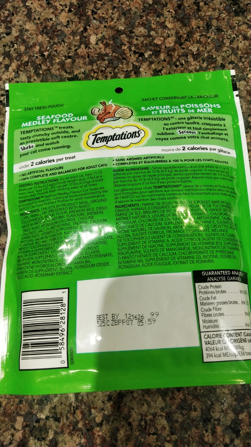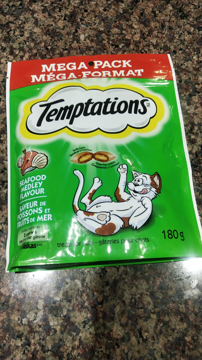 Treat your feline friend to Temptations Seafood Medley Flavour cat treats! These tasty treats are soft inside and crunchy outside, making them irresistible. Each bag contains 180g of treats, perfect for rewarding your cat. Best Before 2026 Dec 16