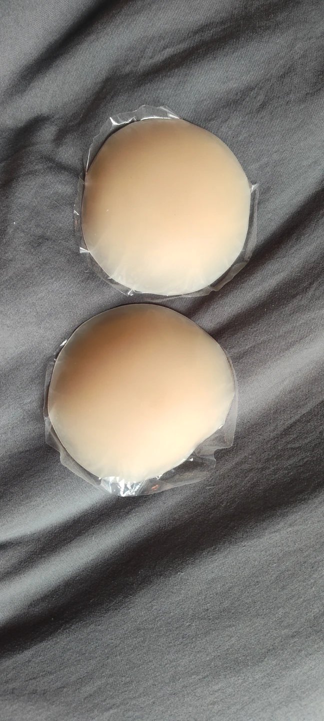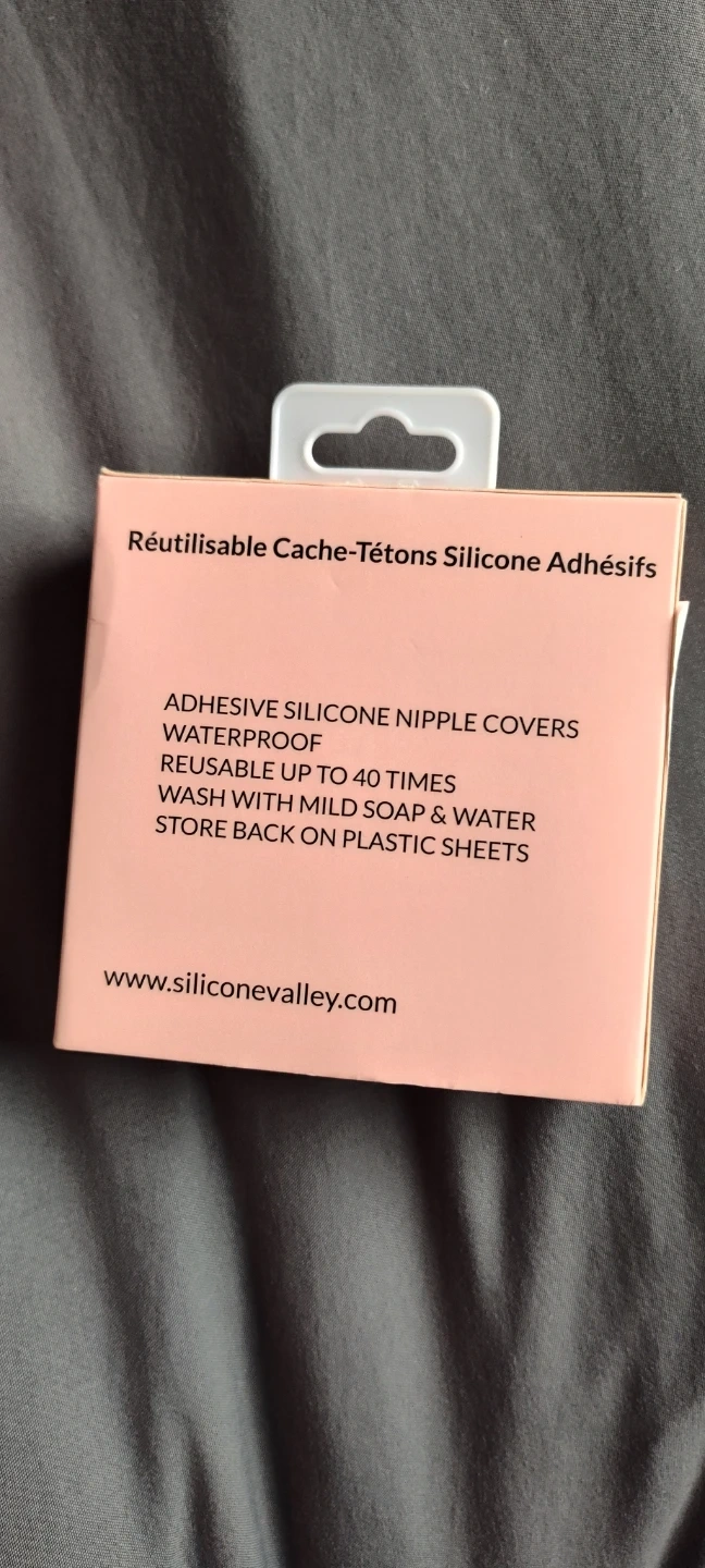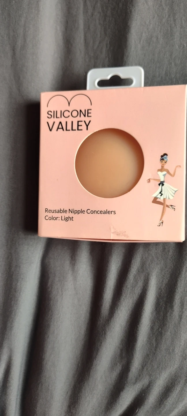 These are Silicone Valley reusable nipple concealers in the colour light! They are adhesive, waterproof, and reusable up to 40 times. Just wash with mild soap and water and store back on the plastic sheets!