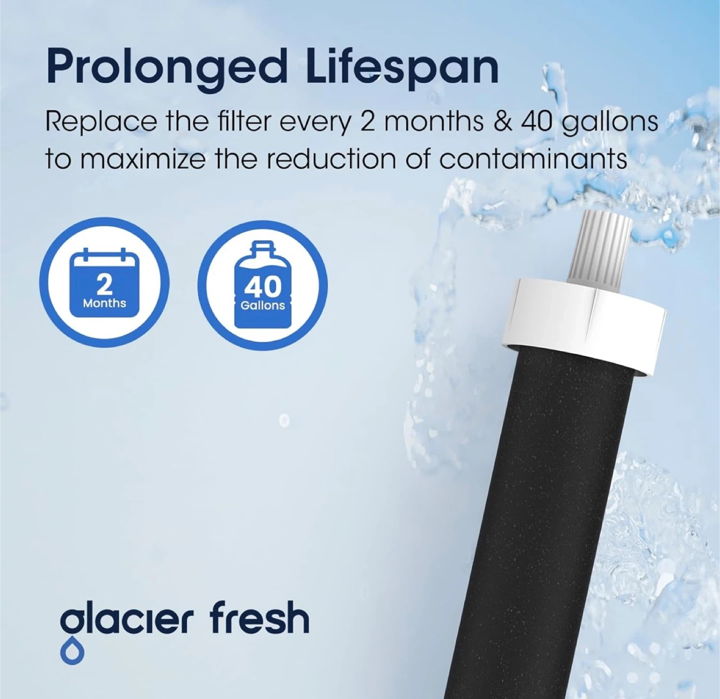 Keep your water clean and fresh with these Glacier Fresh water bottle filters! Compatible with Brita water bottles with straws. They help reduce chlorine, taste, odor, sediments, and sand. Replace the filter every 2 months or 40 gallons to maximize the reduction of contaminants. New in box packaged individually.