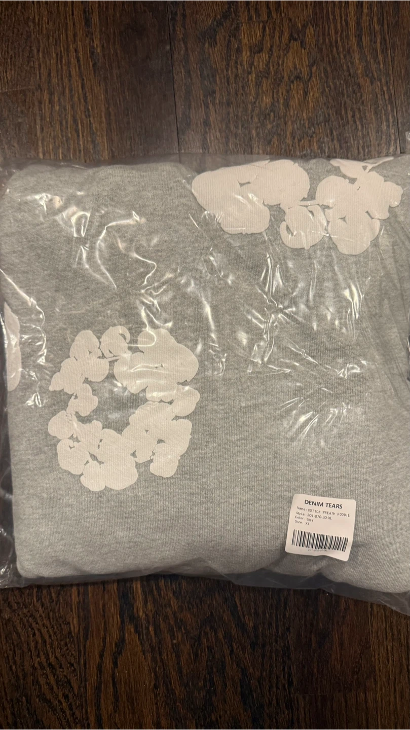 Selling a brand new Denim Tears Cotton Wreath Hoodie in size XL! It's a stylish grey color and has never been worn. Perfect for adding a unique touch to your wardrobe