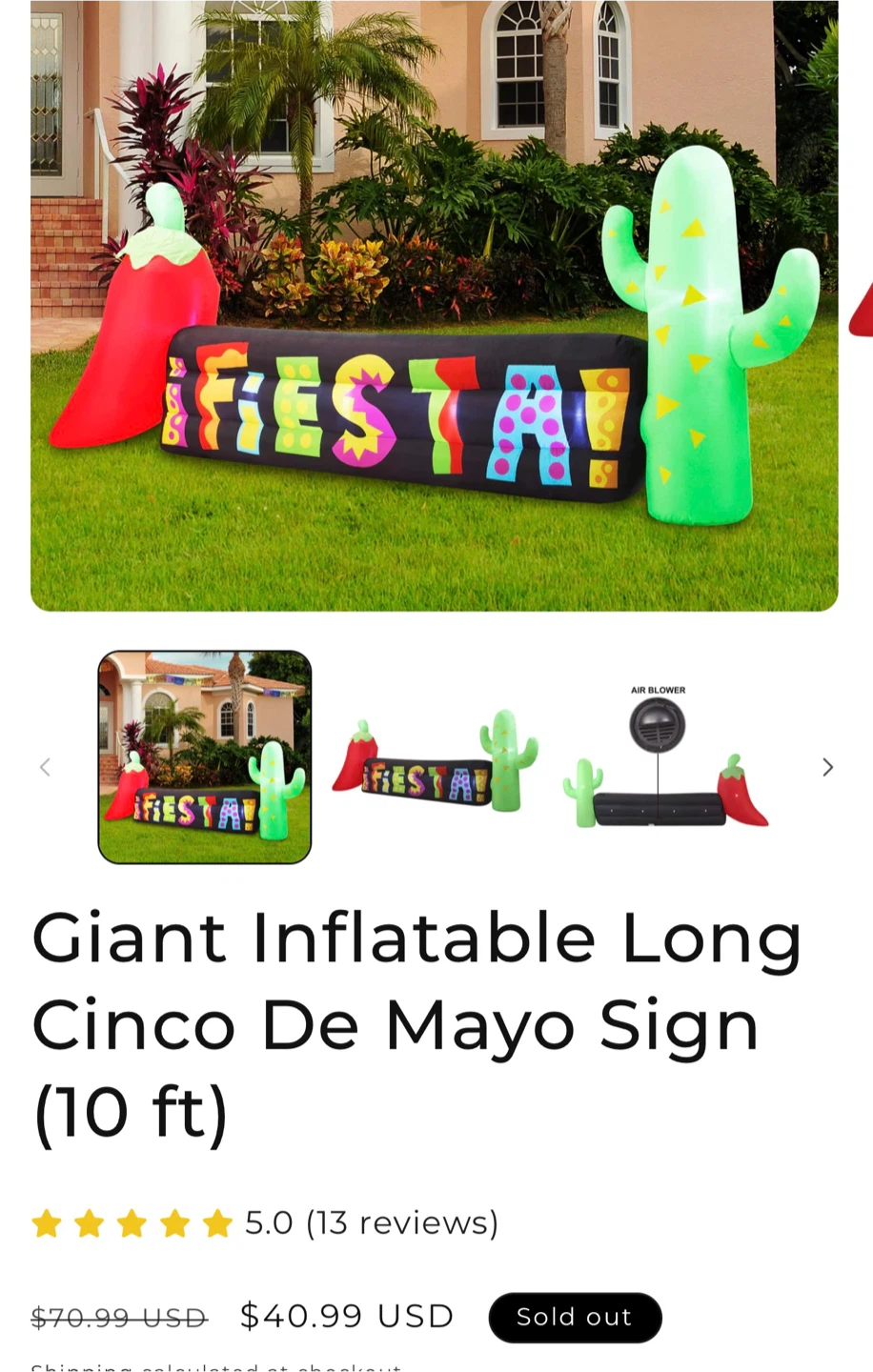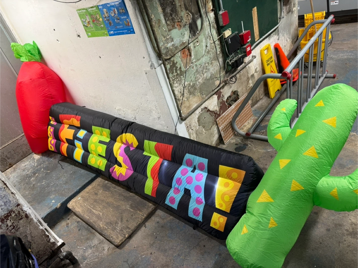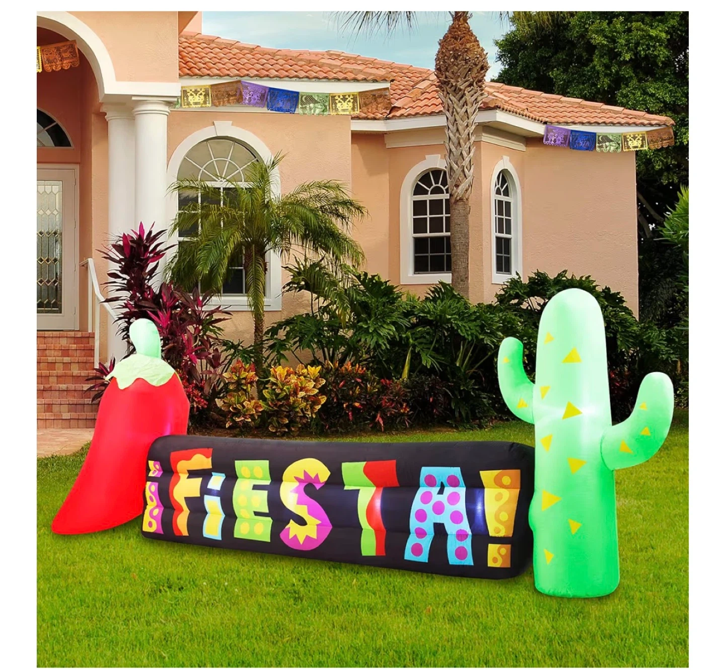 Selling a giant inflatable Cinco De Mayo sign! It's 10 feet long and ready to bring some fiesta fun to your yard. Includes a chili pepper and a cactus!