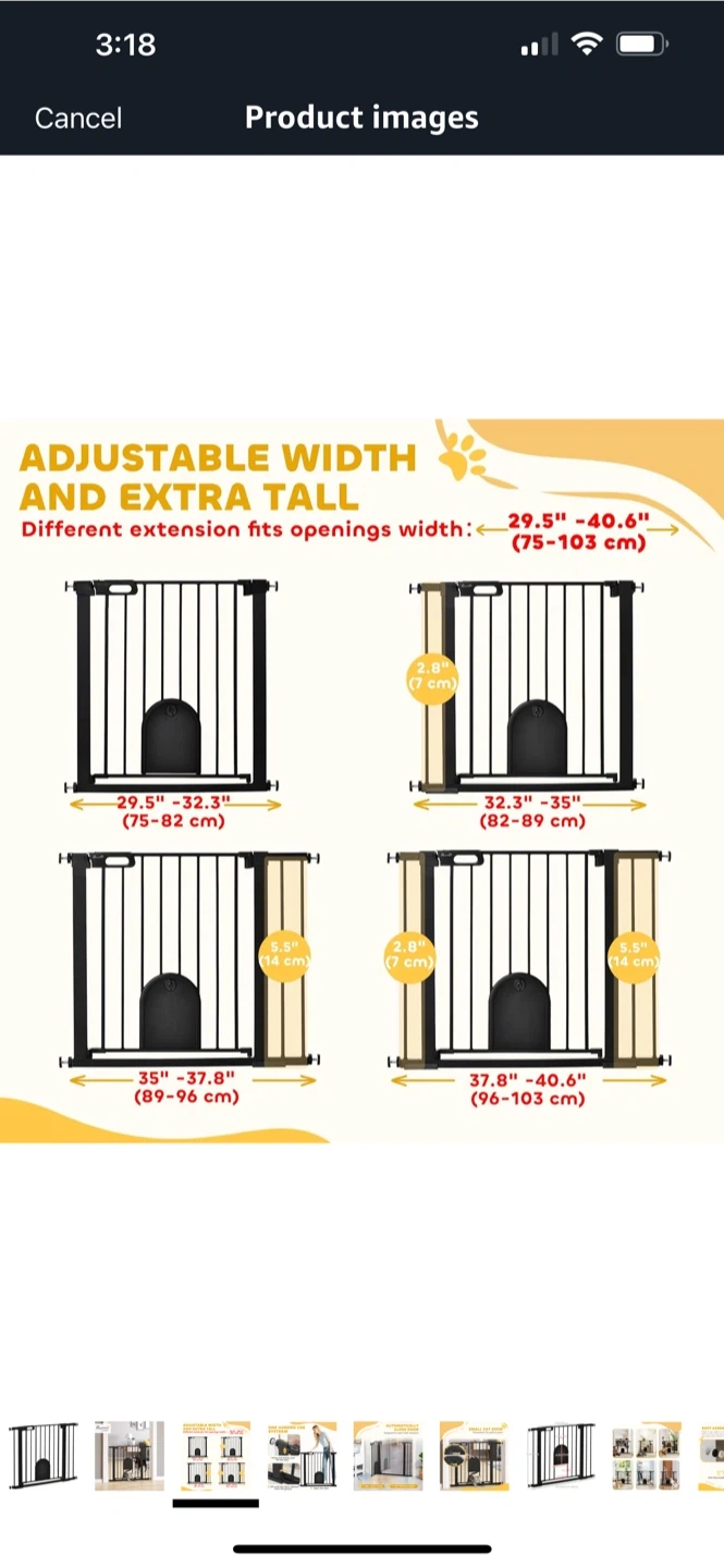 Keep your furry friends safe with this PerPet adjustable and extra tall pet gate! It's designed to fit openings from 29.5" to 40.6" wide and is extra tall to keep even the most agile pets contained. The gate is in great condition and ready to use in your home.