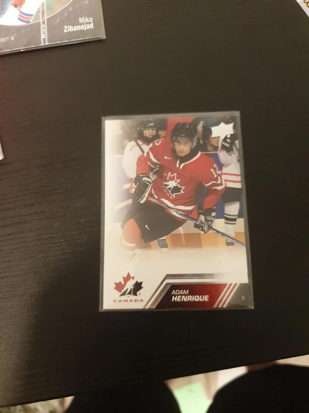 Selling an Adam Henrique hockey card. It features him in his Team Canada jersey. Great for any hockey fan or card collector!