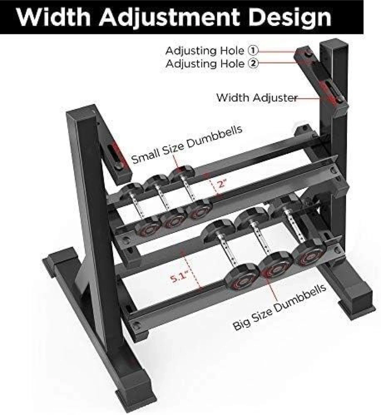 Selling a weight rack for dumbbell storage! It's designed with adjustable width, so you can store different sizes of dumbbells. The dimensions are approximately 39" in width, 36.6" in height, and 19.7" in depth. Perfect for organizing your home gym