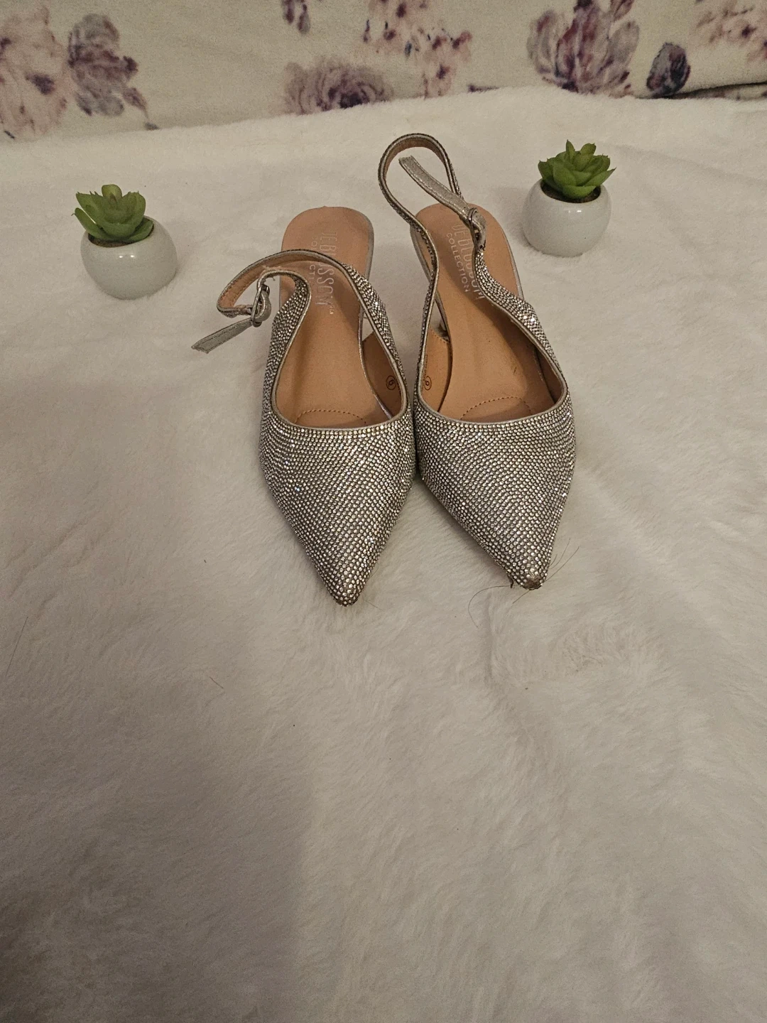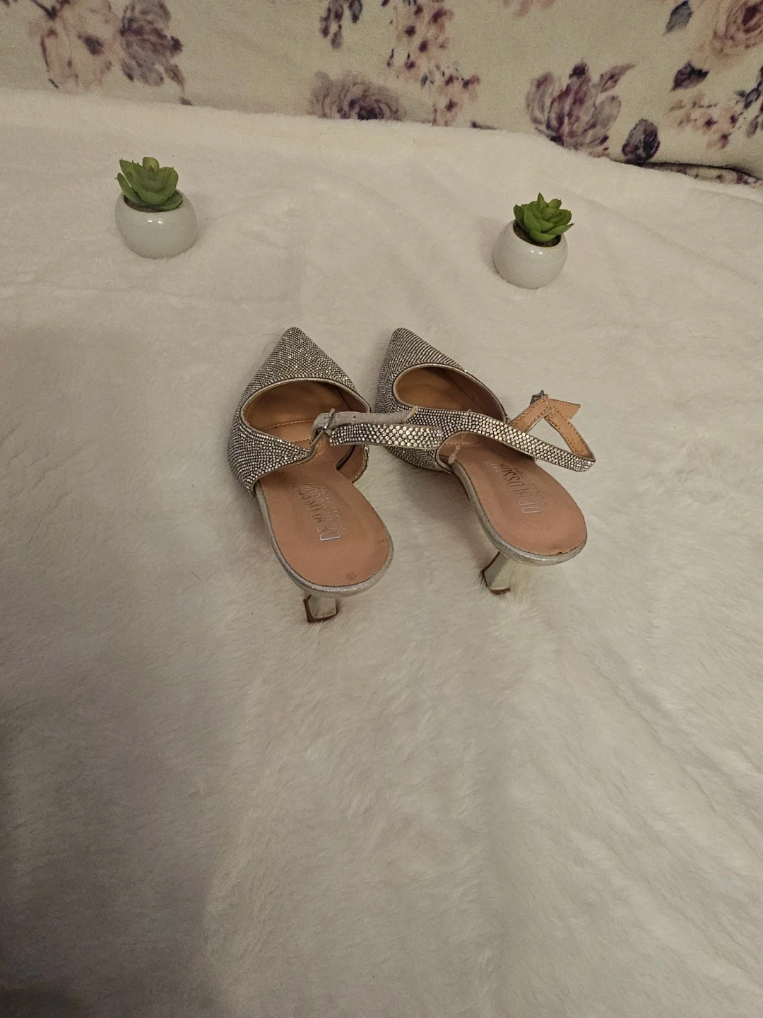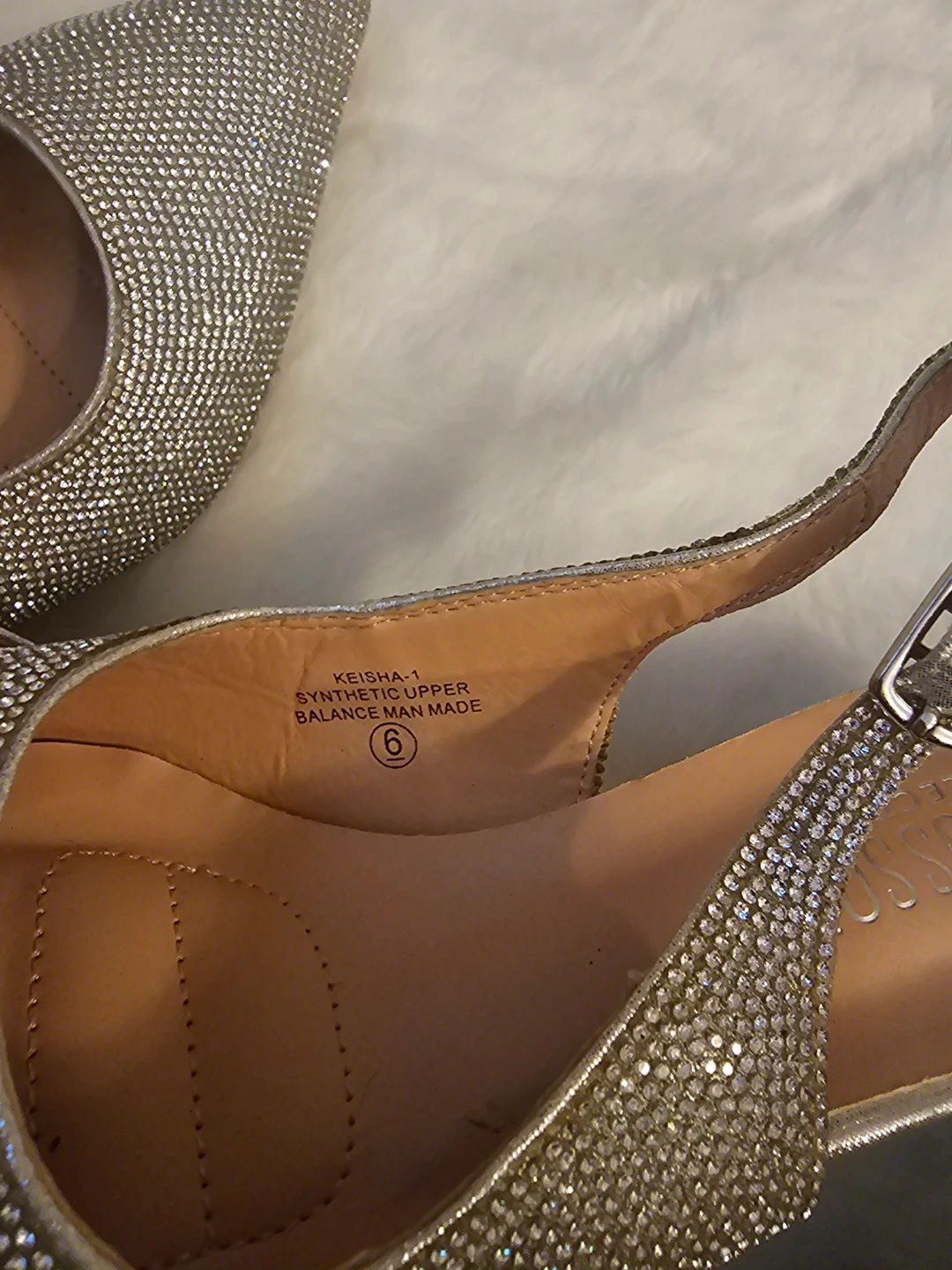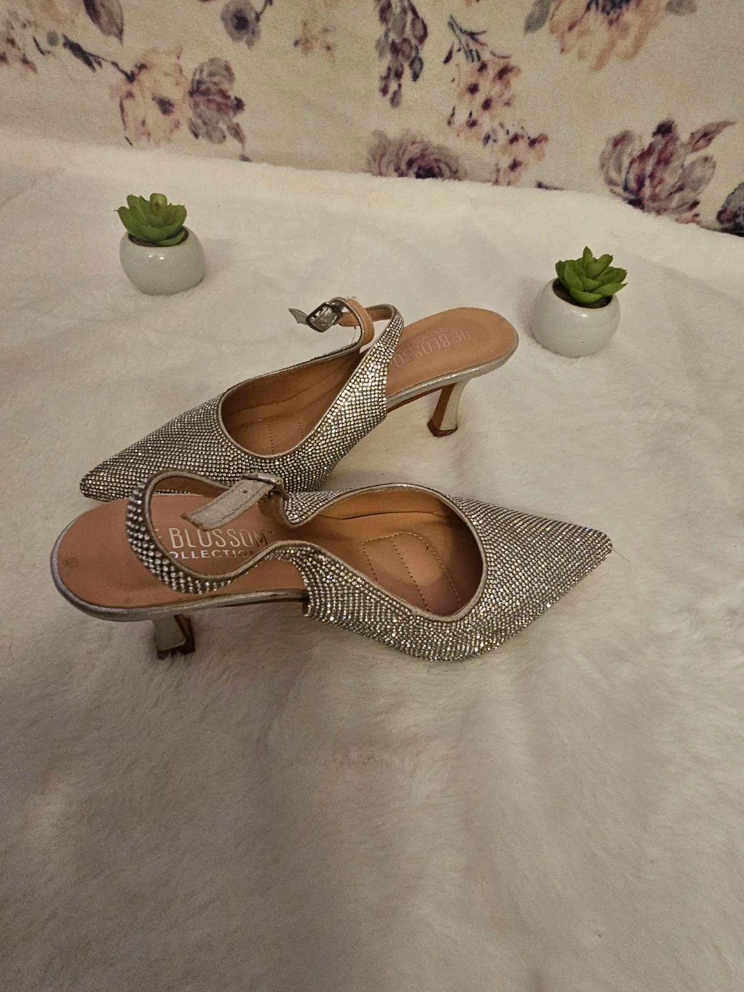 Selling a pair of Blossum Collection silver heels in size 6. They feature a synthetic upper and man-made balance, perfect for adding a touch of sparkle to your outfit!