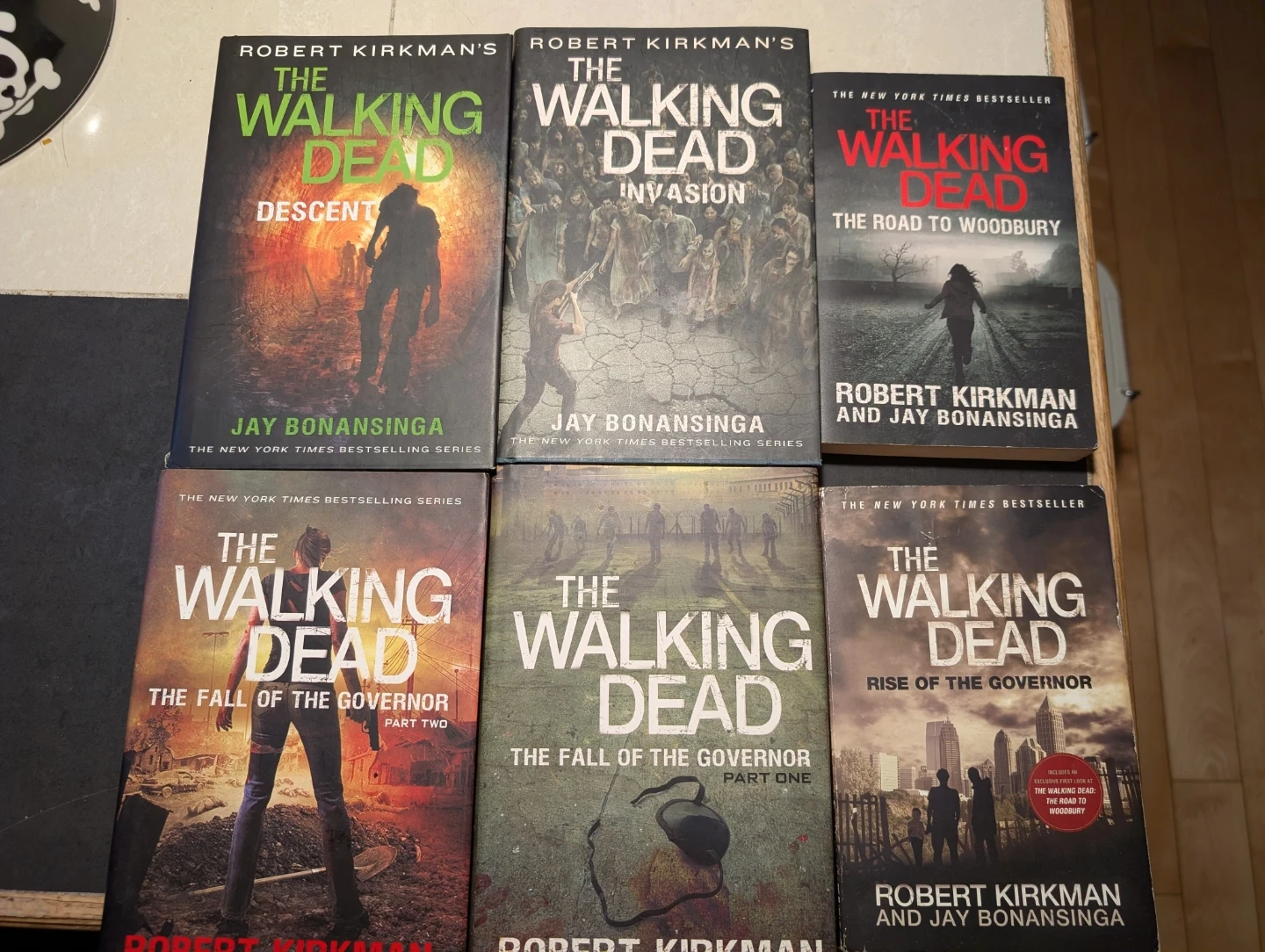 Selling a set of The Walking Dead books by Robert Kirkman and Jay Bonansinga. Includes Descent, Invasion, The Road to Woodbury, The Fall of the Governor Part 1 & 2, and Rise of the Governor. Great for any fan of the series!