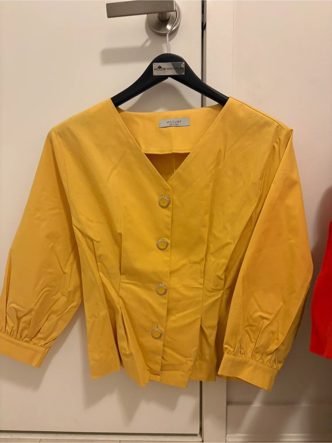 A lovely yellow blouse from magjay! The blouse features unique decorative buttons. It's in great condition and ready for a new wardrobe