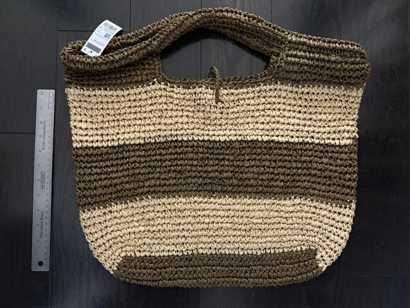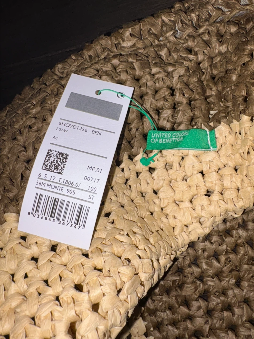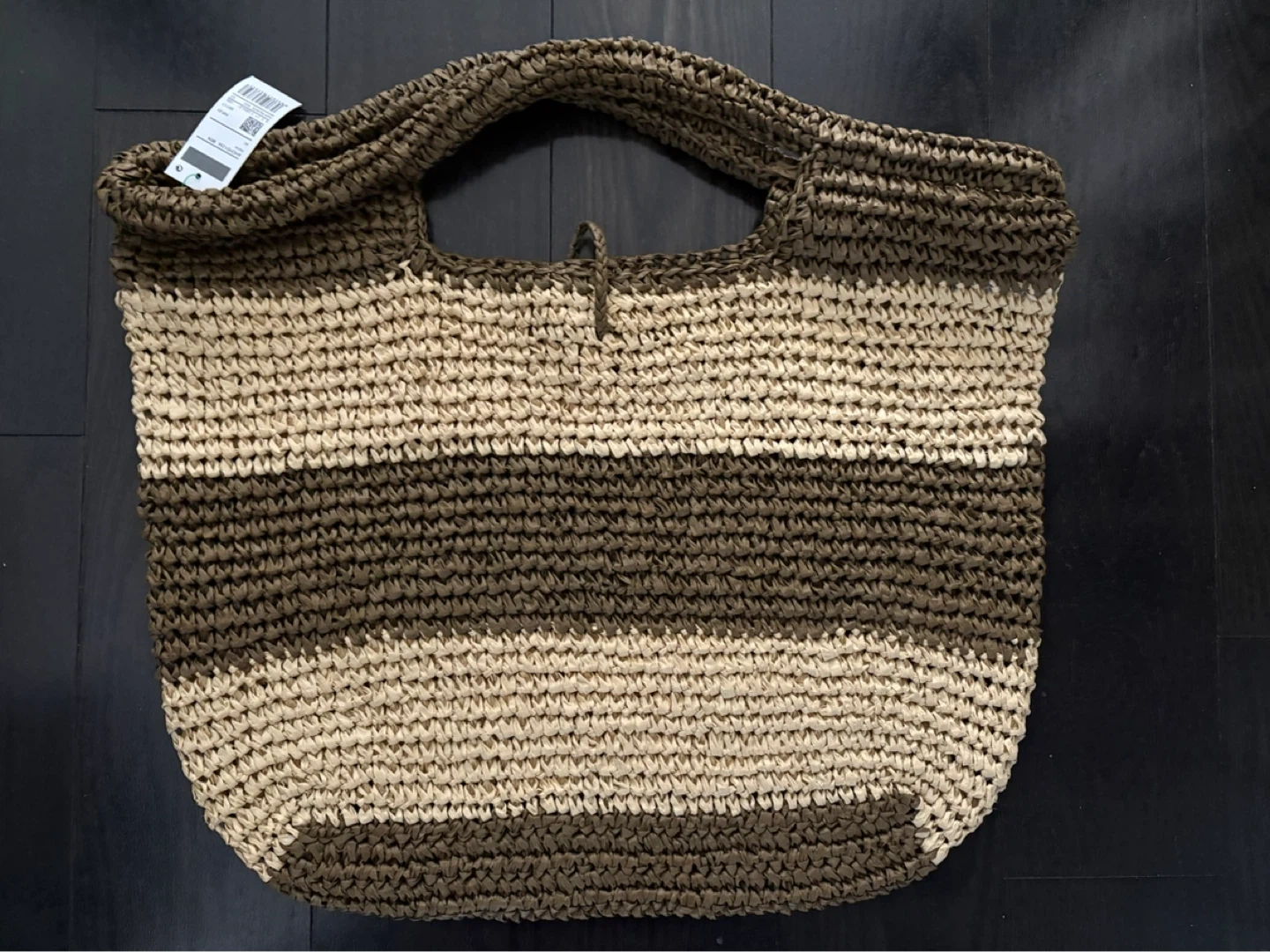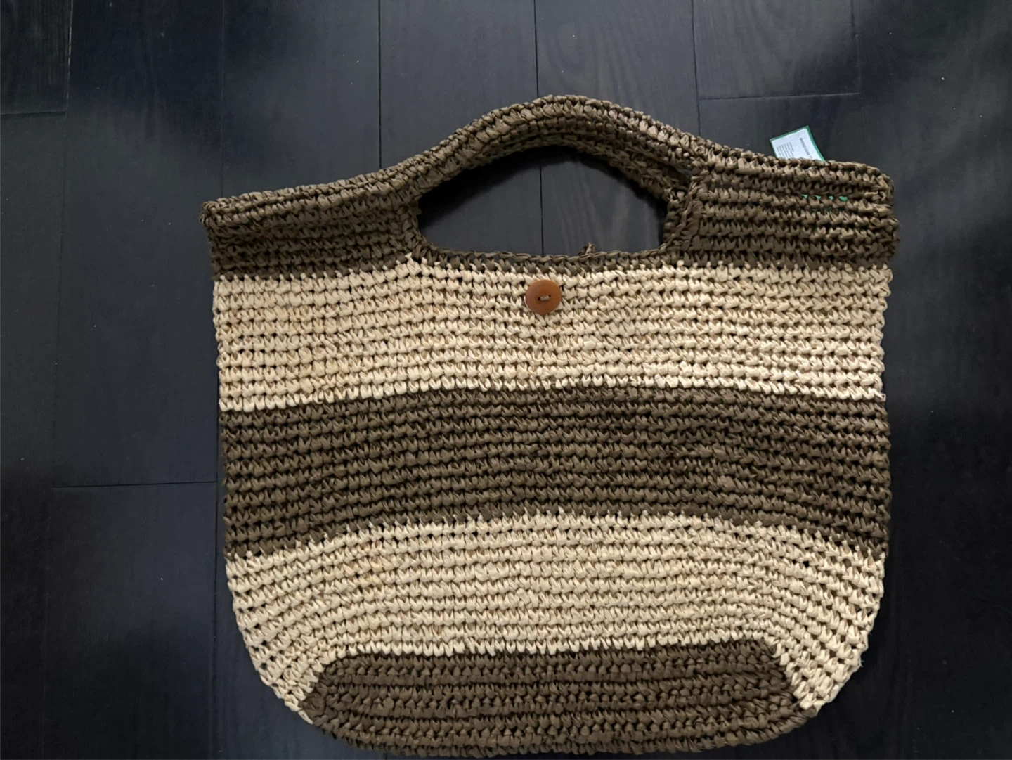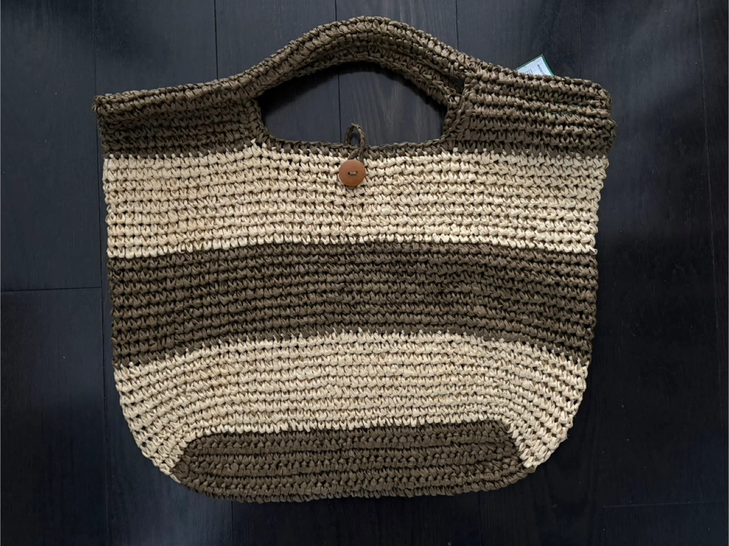 BRAND NEE with tag! Here's a cute straw tote bag from United Colors of Benetton! It features a striped design in natural and brown tones. Perfect for summer outings and carrying your essentials