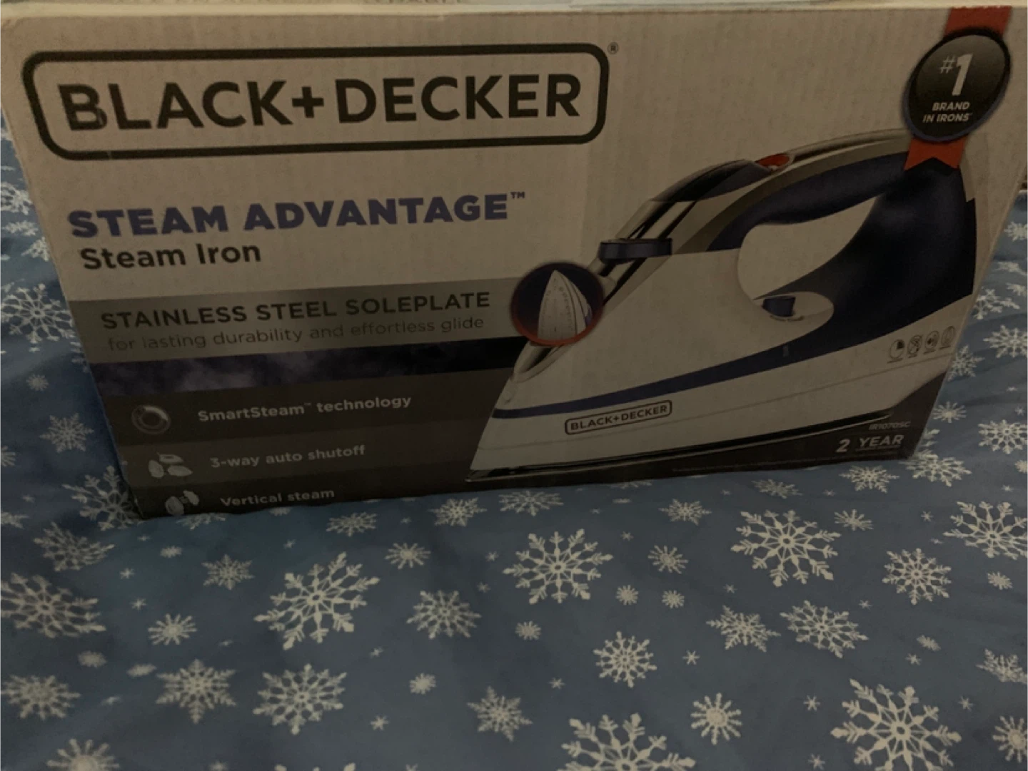 Selling a BLACK+DECKER Steam Advantage Steam Iron. This iron features a stainless steel soleplate for lasting durability and effortless glide. It also has SmartSteam technology, a 3-way auto shutoff, and vertical steam. The box is included!