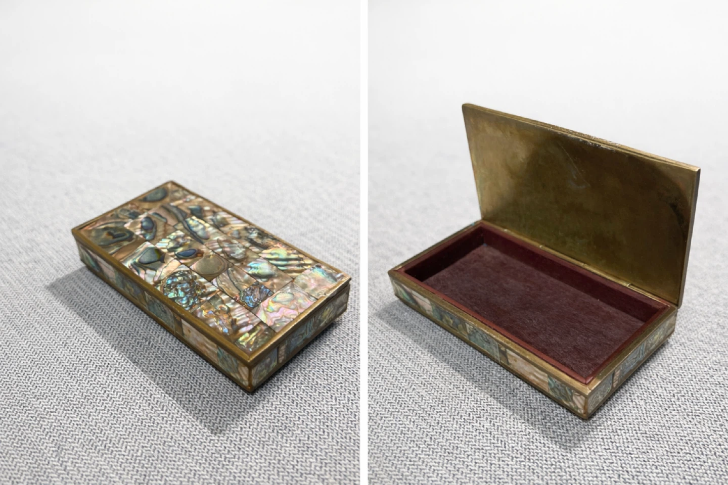 Antique Mother of Pearl Jewelry Box (Brass + Velvet Lined)