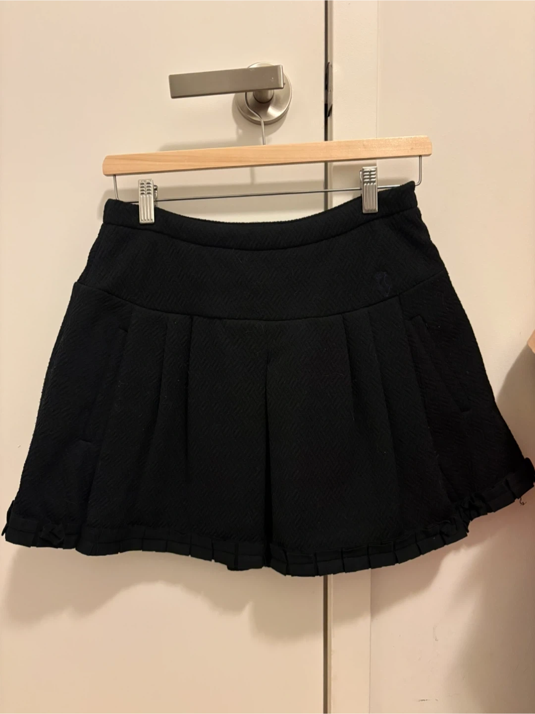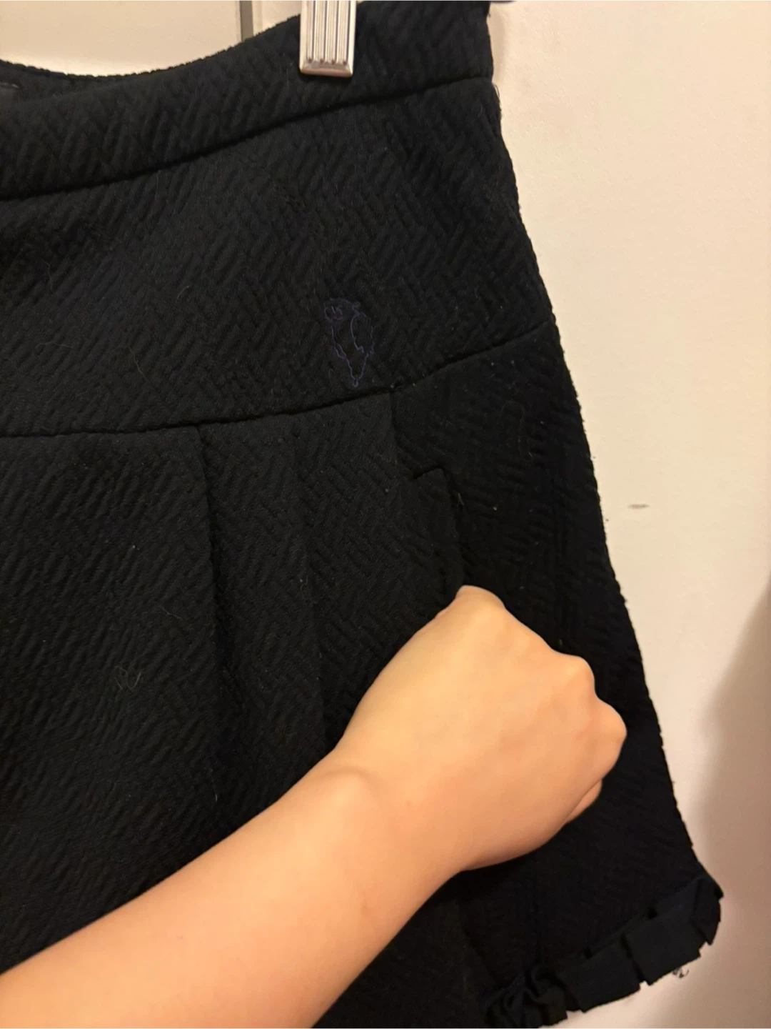 Selling a cute navy skirt from JILL by JILLSTUART. It's a size M. The waist measures 70cm and the hips measure 96cm. The material is 97% polyester and 3% polyurethane.