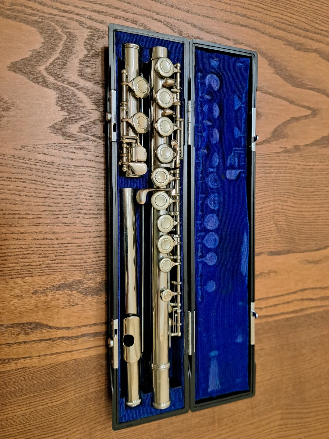 It's a Yamaha flute but be aware that it doesn't make a good sound, that's why it's cheap. It's very likely you'll have to get it fixed.
