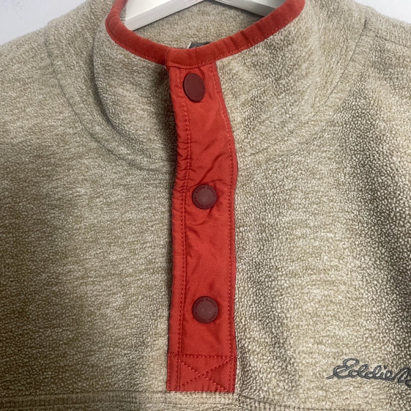 Eddie Bauer Men's Brown Snap Fleece Pullover Sweater