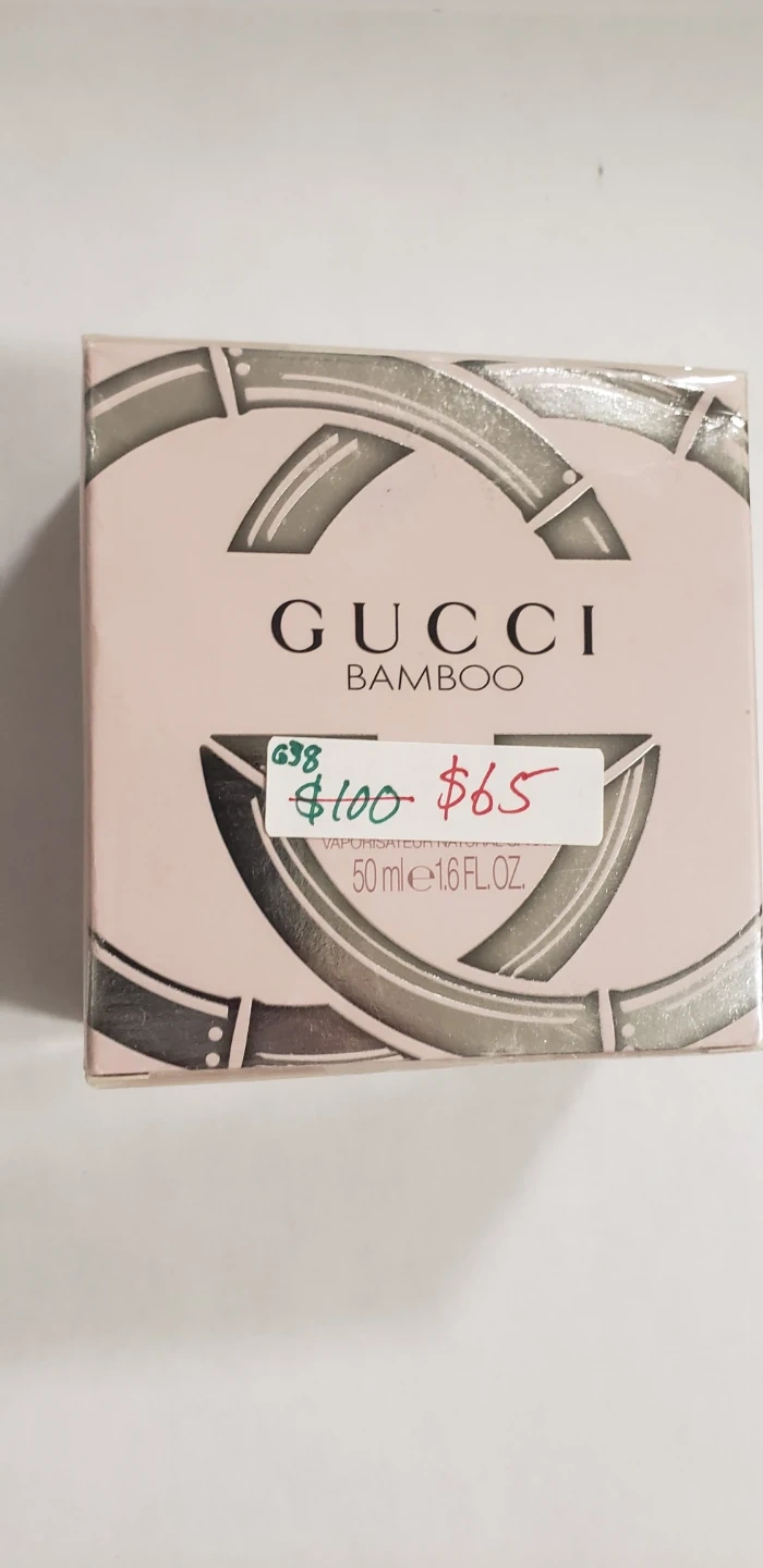 Selling a bottle of Gucci Bamboo perfume. It's a 50ml bottle and comes in its original box. The box shows that it's a Vaporisateur Natural Spray. Originally priced at $100, now asking $65!
