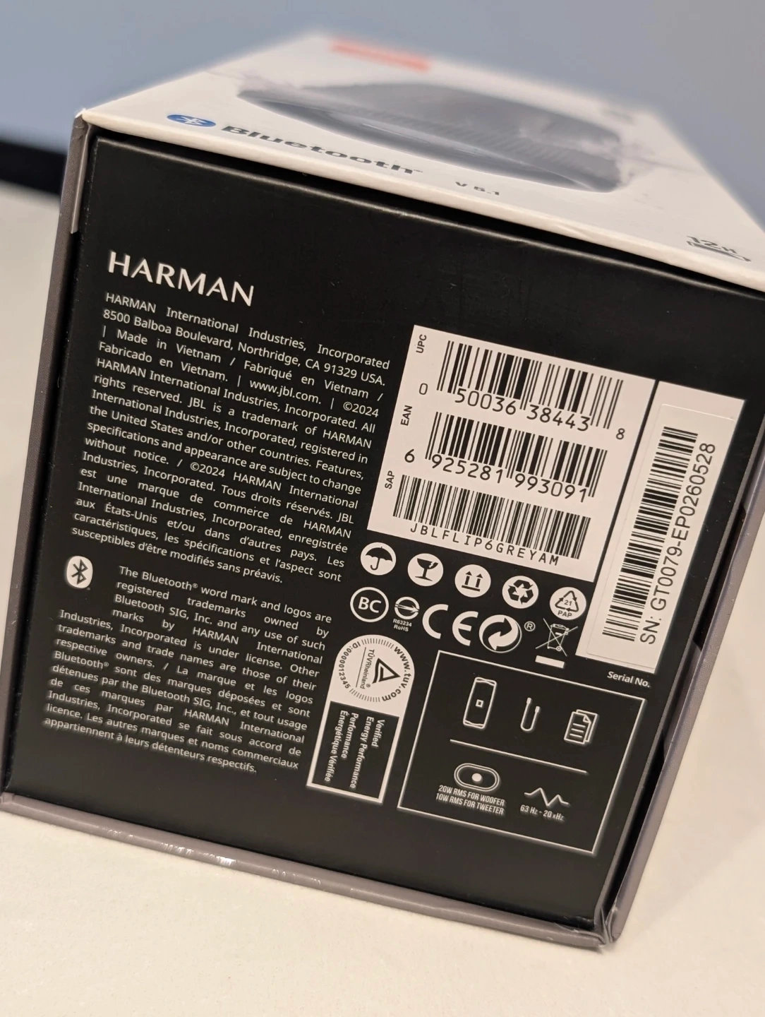 It's still in its original packaging. It has an IP67 rating making it waterproof and dustproof, and it provides 12 hours of playtime on a single charge.