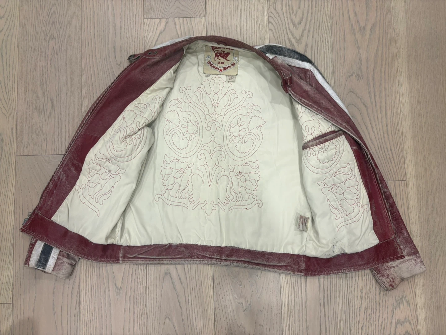 I'm selling a vintage men’s Parasuco distressed leather jacket in a size medium.