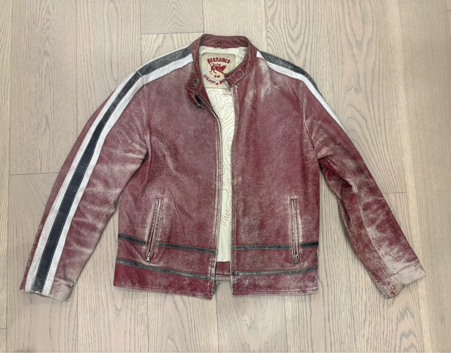 I'm selling a vintage men’s Parasuco distressed leather jacket in a size medium.