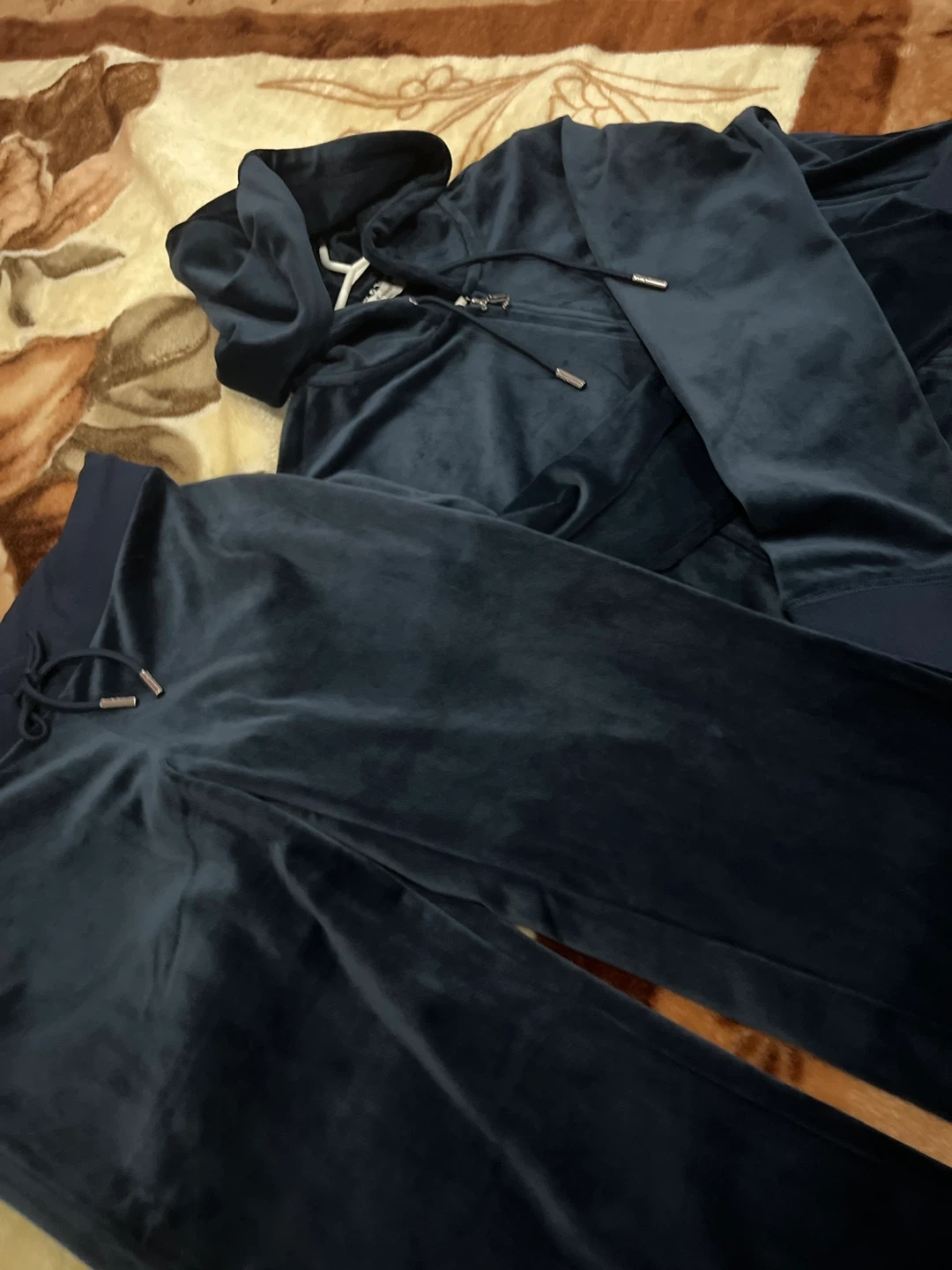 Selling a super comfy Juicy Couture velour tracksuit! It's a stylish and cozy set, perfect for lounging or running errands. The material is soft and plush, and the rhinestone detailing adds a touch of glam to the classic tracksuit look! Mint Condition never worn.