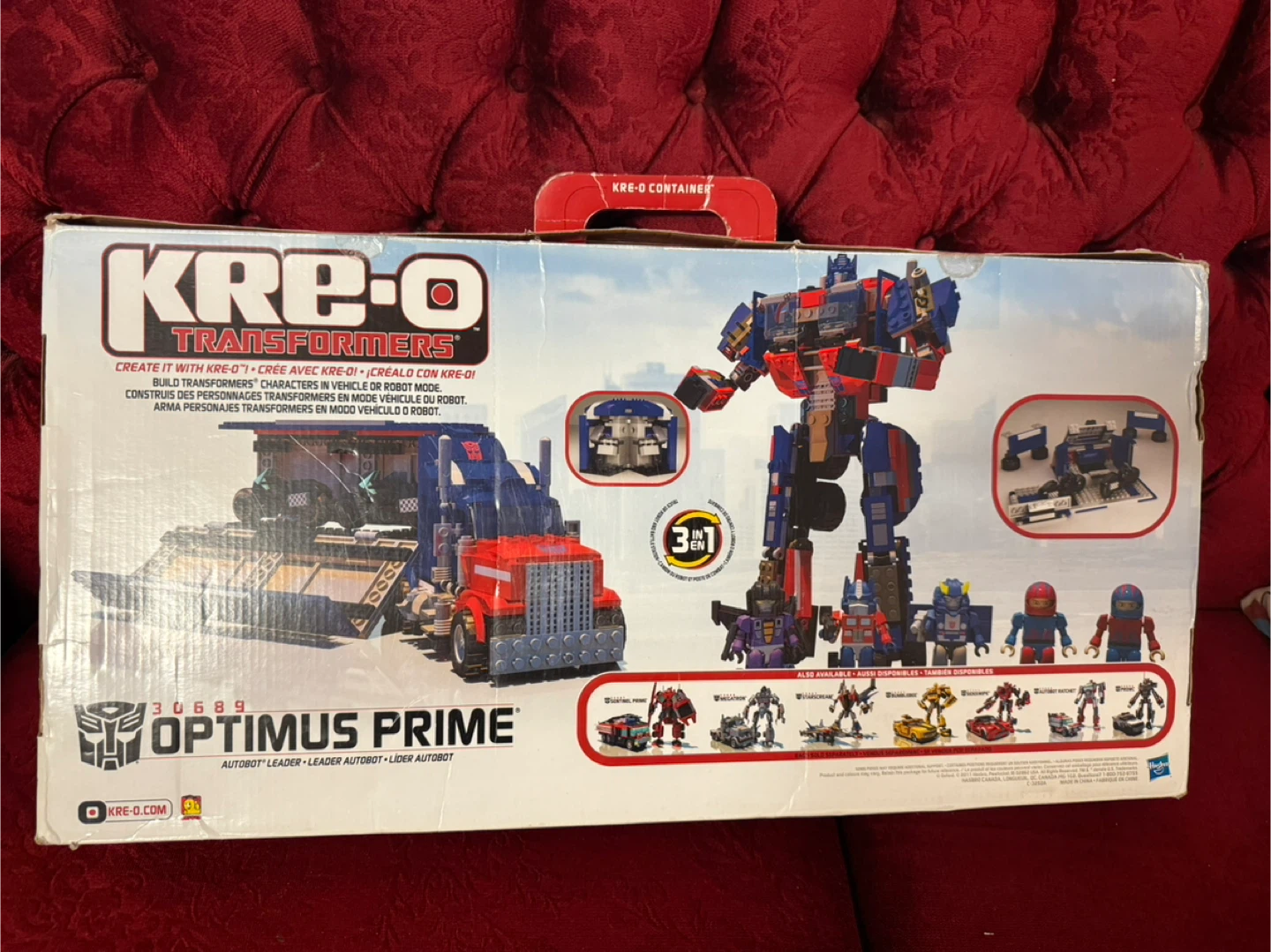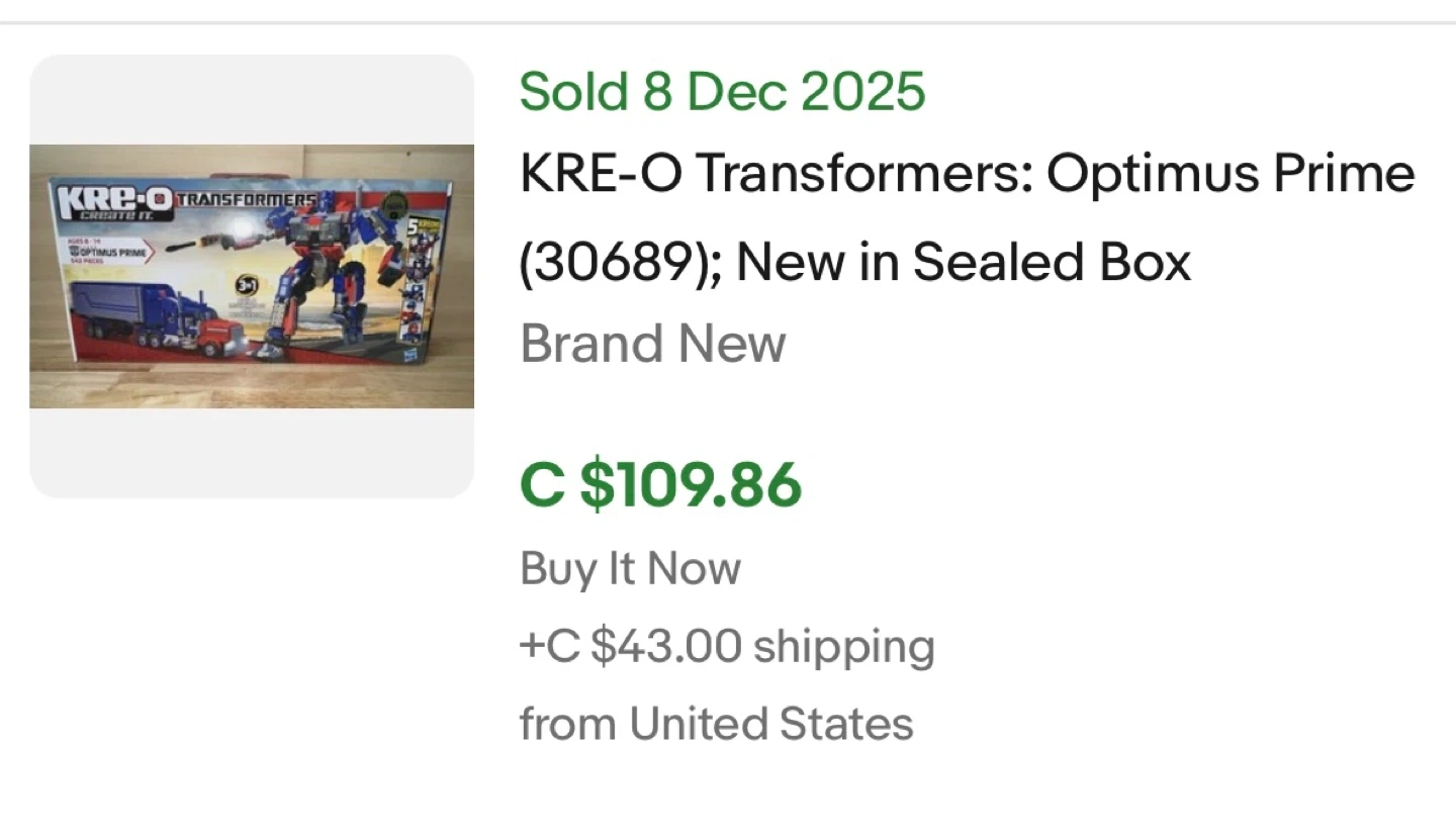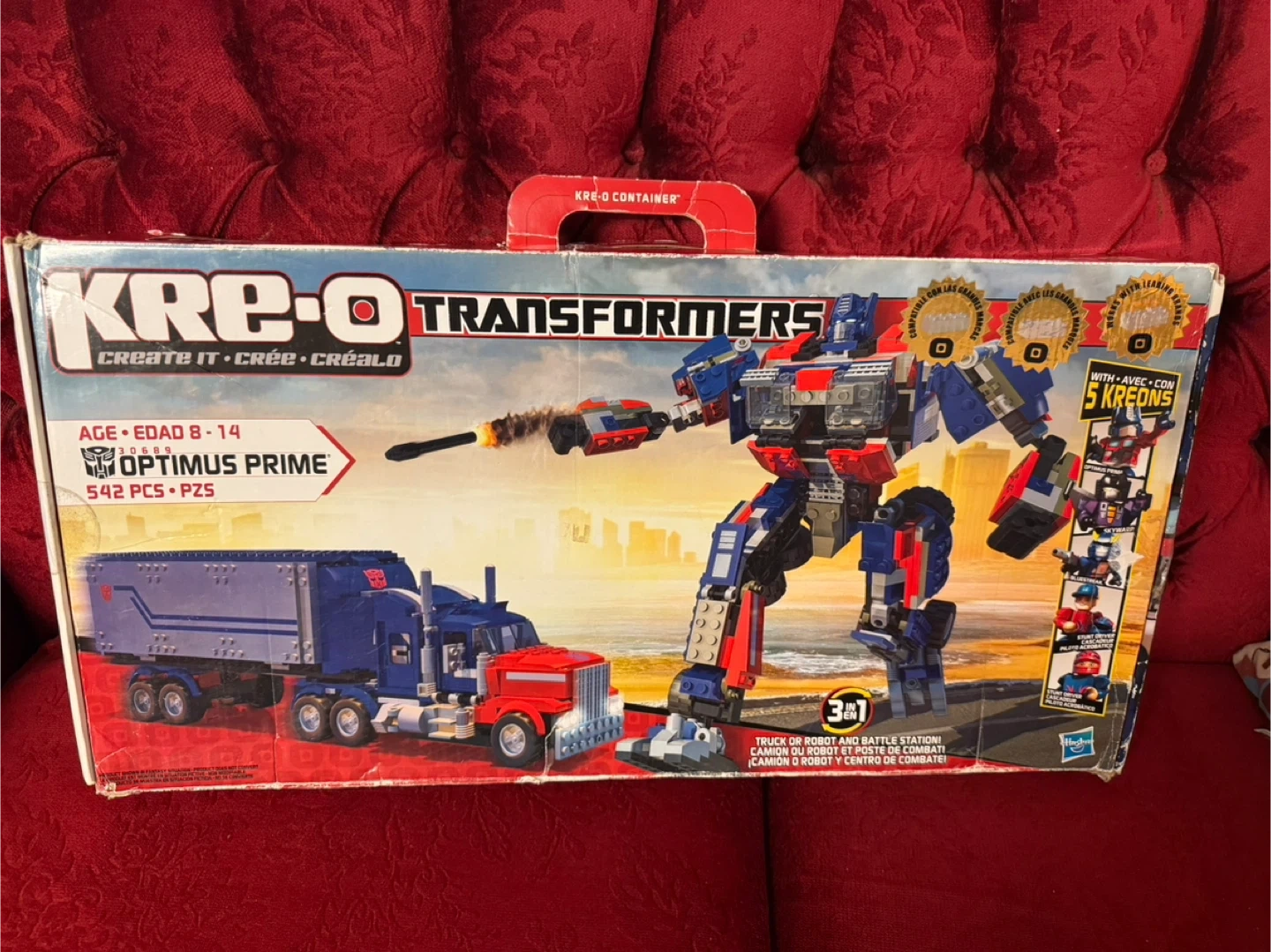 Selling a Kre-O Transformers Optimus Prime set! It's in great condition and ready for a new builder. The box says it's for ages 8-14 and contains 542 pieces. It can be built in 3 different ways!