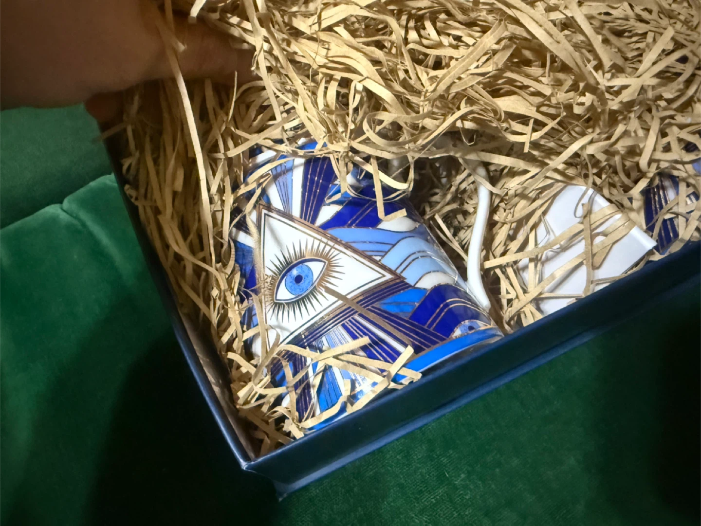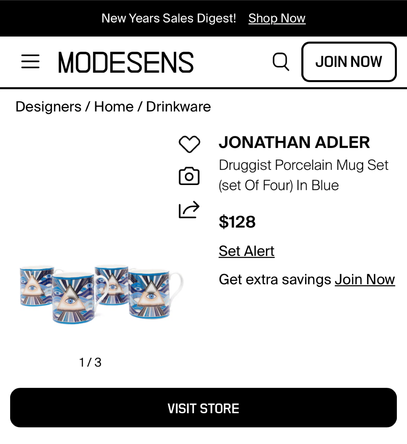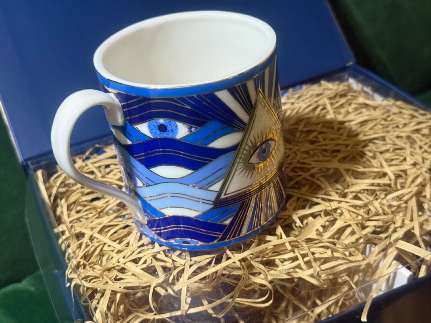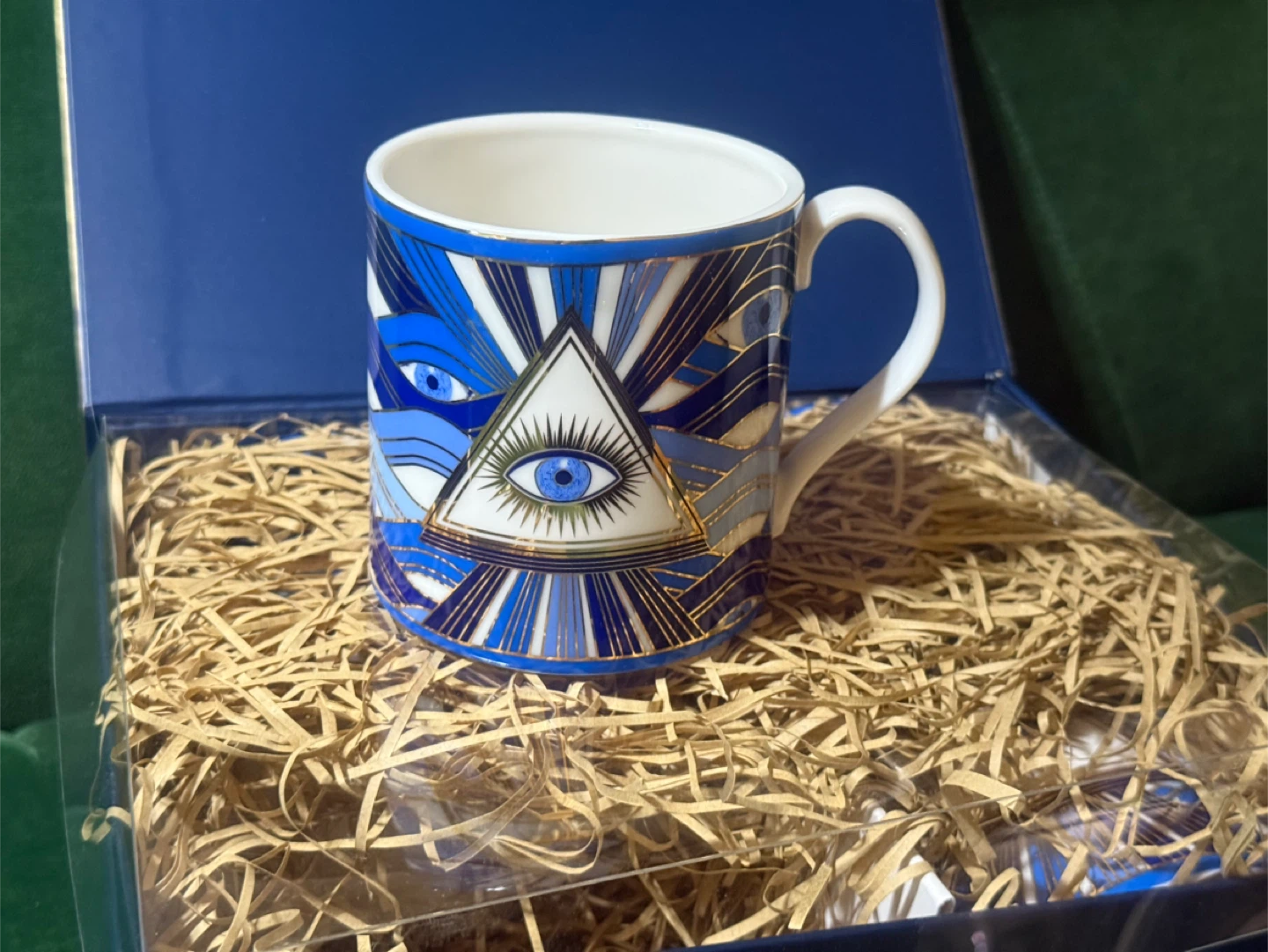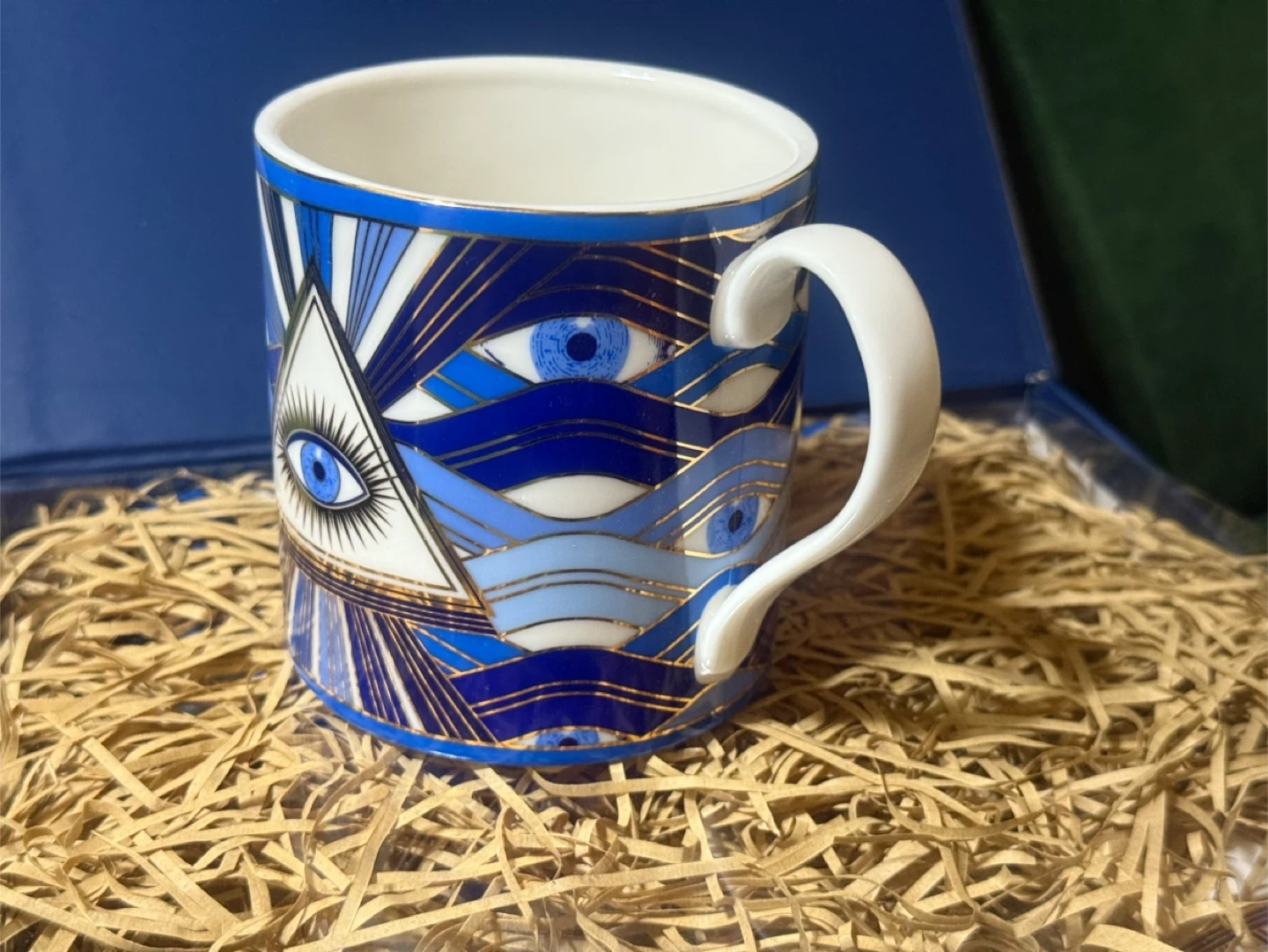 Brand new, Jonathan Adler Druggist Mug. blue/multicolour porcelain all-over graphic print glossy finish glazed interior dishwasher safe 12 fl oz. $30 for one, $50 for 2, $75 for 3, $90 for whole set of 4 with original box.