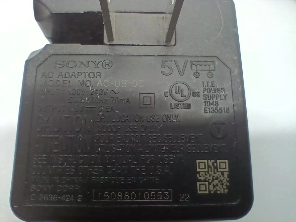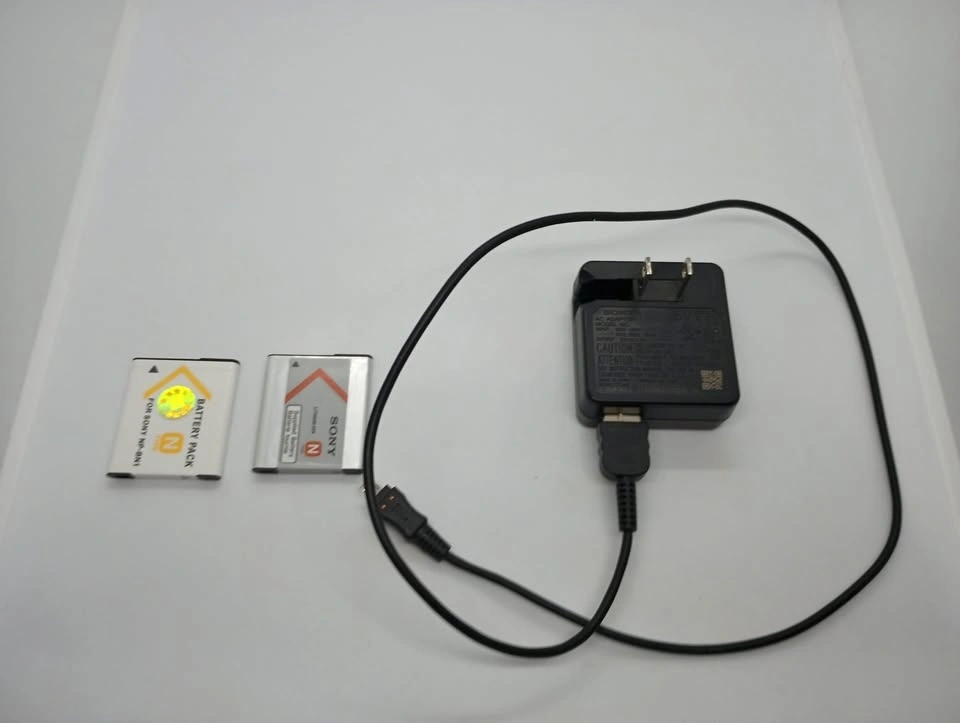 Sony Cybershot camera AC-UB10C AC adapter/charger with USB cable (with USB mini-B plug) and two N Type batteries. AC adapter, USB cable and batteries are compatible with several Sony camera models that have a USB mini-B port including Sony Cybershot DSC-W830, DSC-W810, DSC-W800, DSC-W710, DSC-730 and other models.