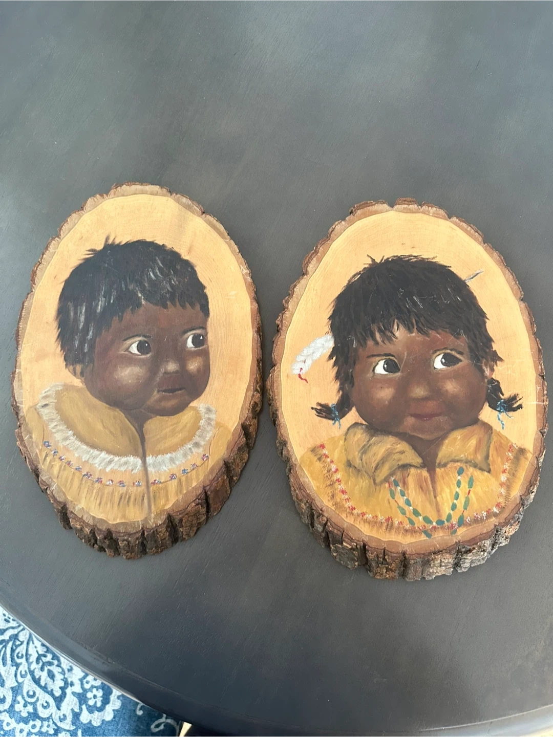 I am selling a pair of vintage artworks featuring portraits of Indigenous children.