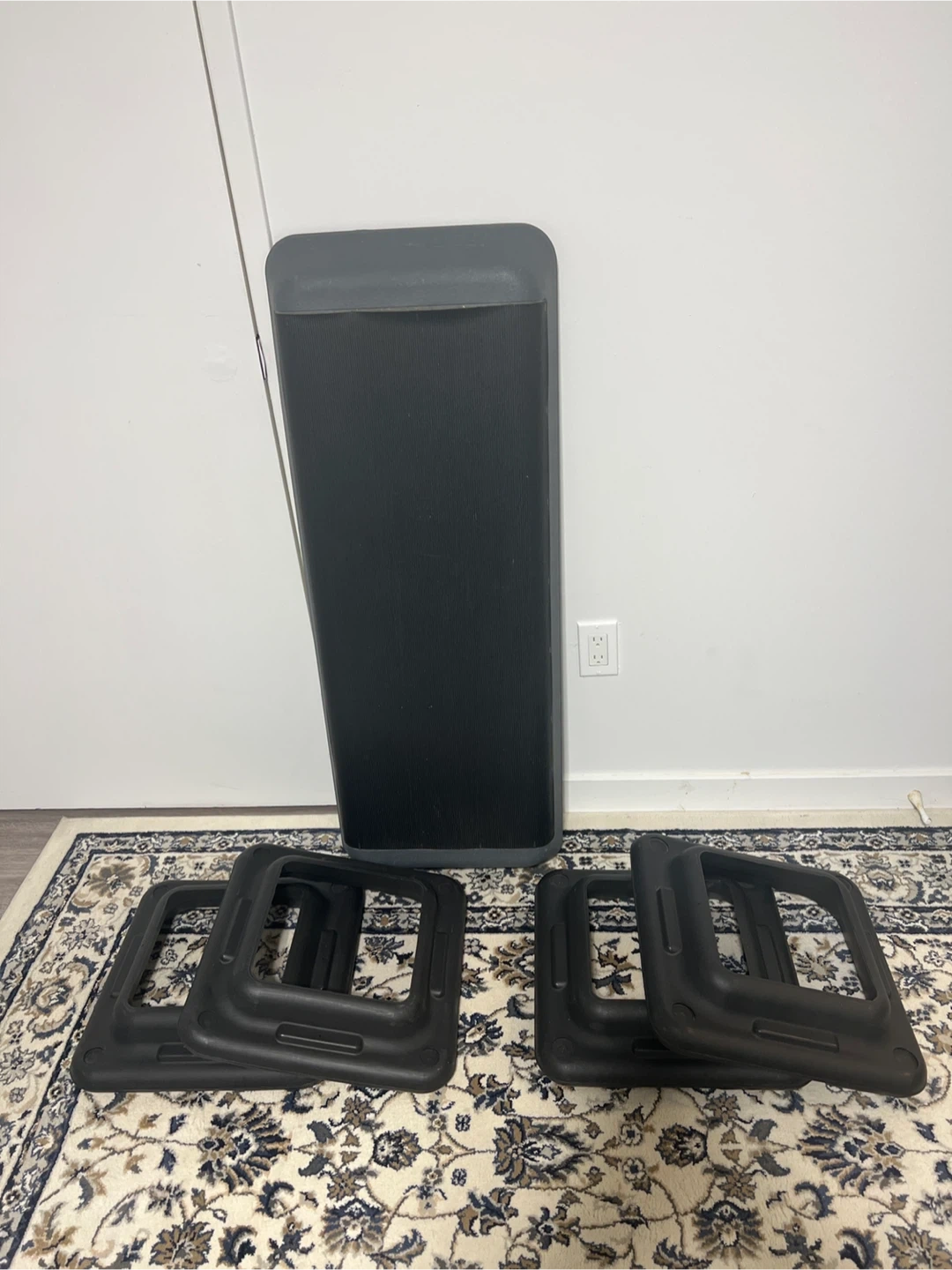 Get your workout on with this aerobic step platform! It comes with risers to adjust the height to your liking. Perfect for home workouts and getting your heart rate up the platform is 43“ x 16“