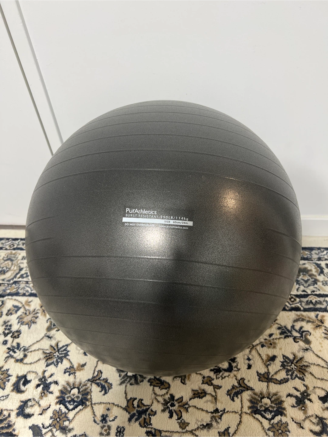 Selling a PürAthletics exercise ball. It's burst resistant and can hold up to 250lbs/114kg. This ball is 65cm/26in in size, perfect for your home workouts!