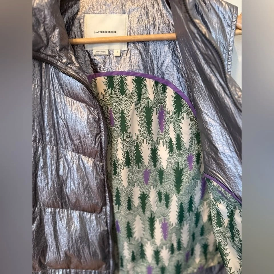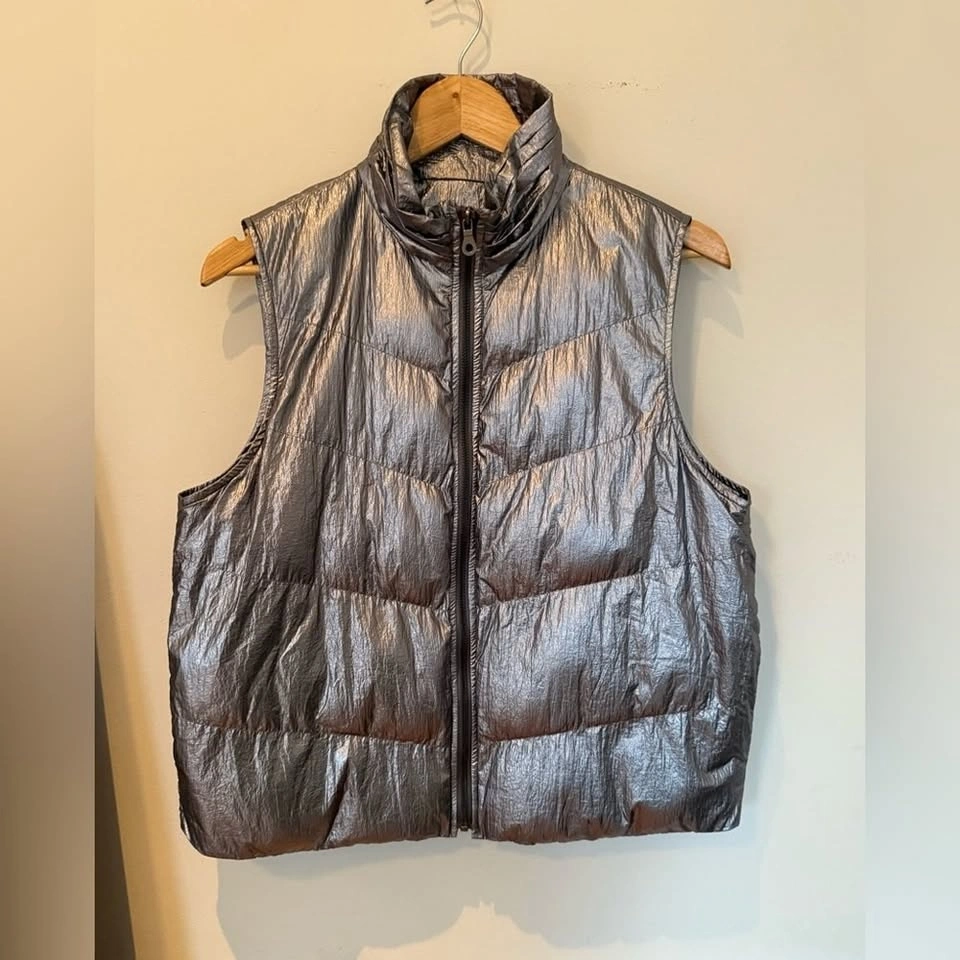 Anthropologie Metallic Silver Puffer Vest – Size Small