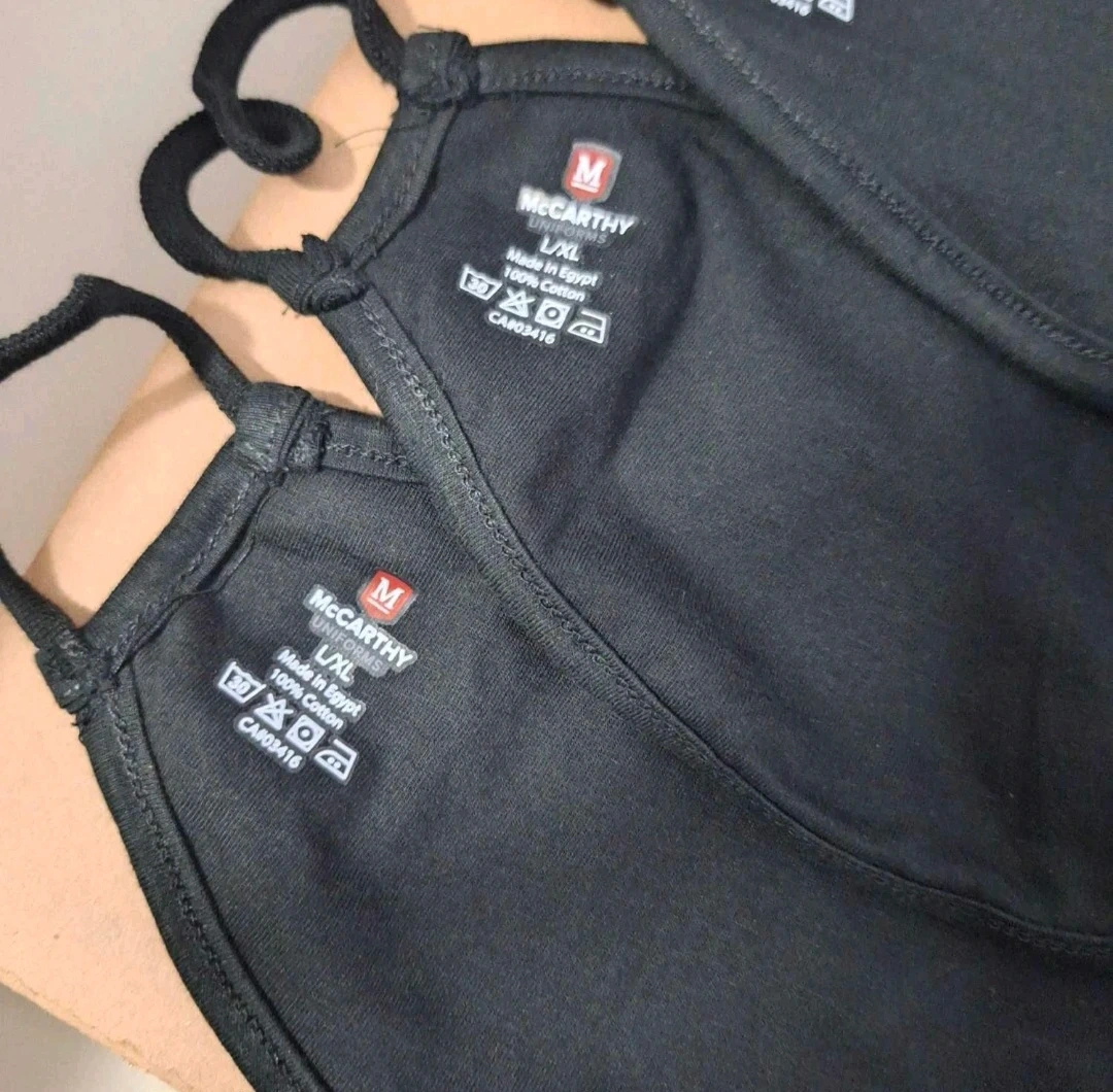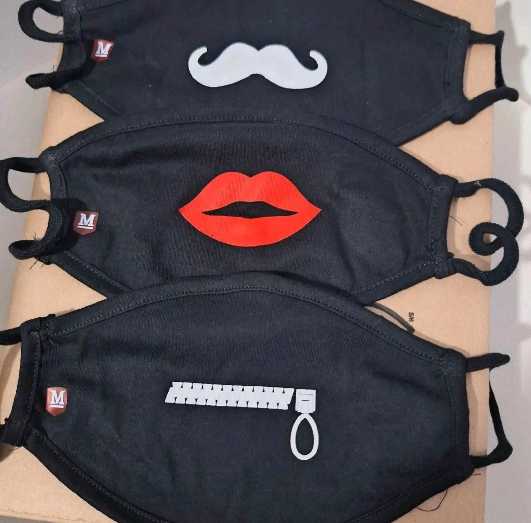 A set of McCarthy unisex face masks in size L/XL. These masks are made from 100% cotton and come in black with various designs. Perfect for everyday use!