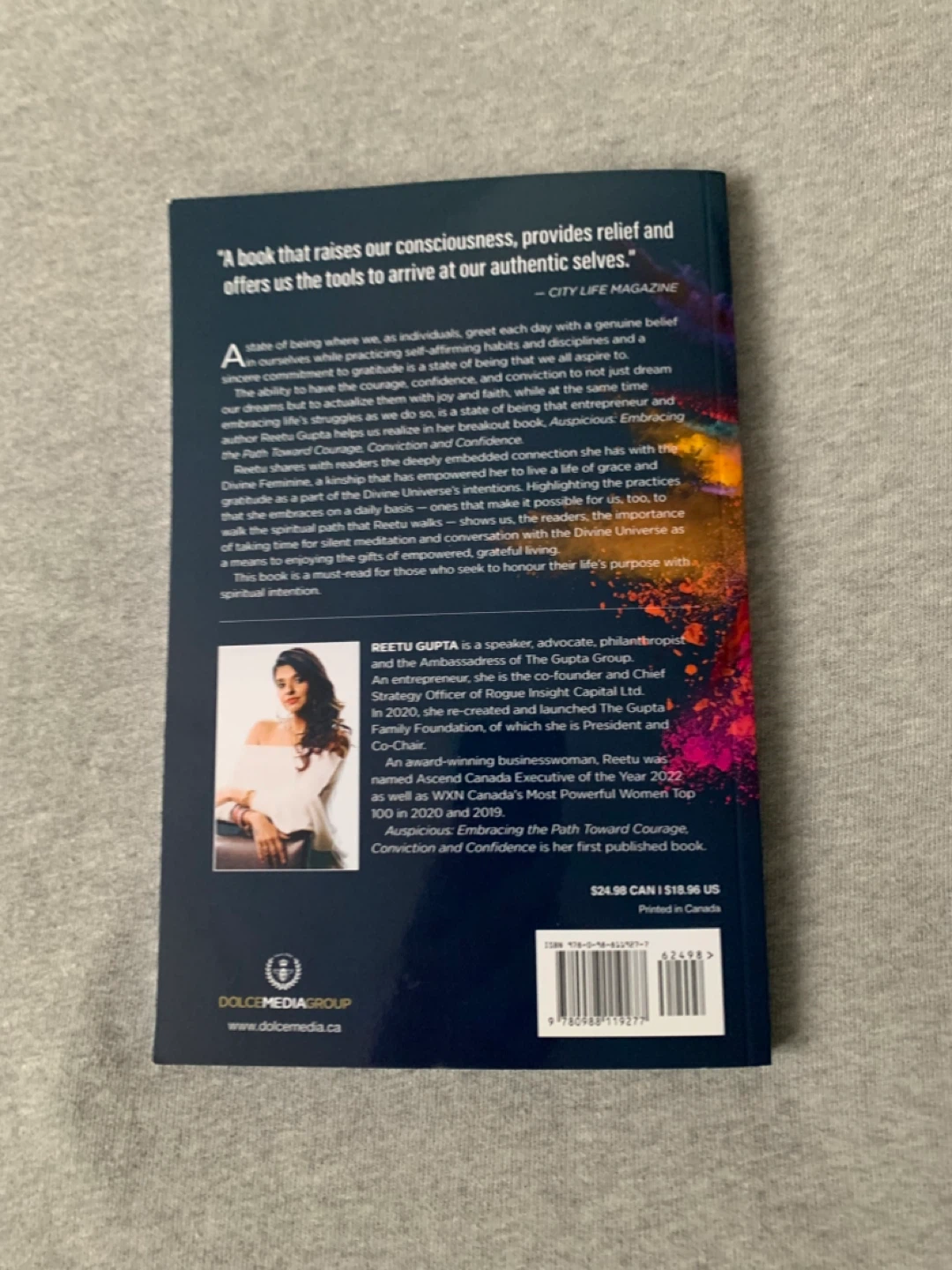 Selling the book Auspicious: Embracing the Path Toward Courage, Conviction and Confidence by Reetu Gupta. It's a book that raises our consciousness, provides relief and offers us the tools to arrive at our authentic selves