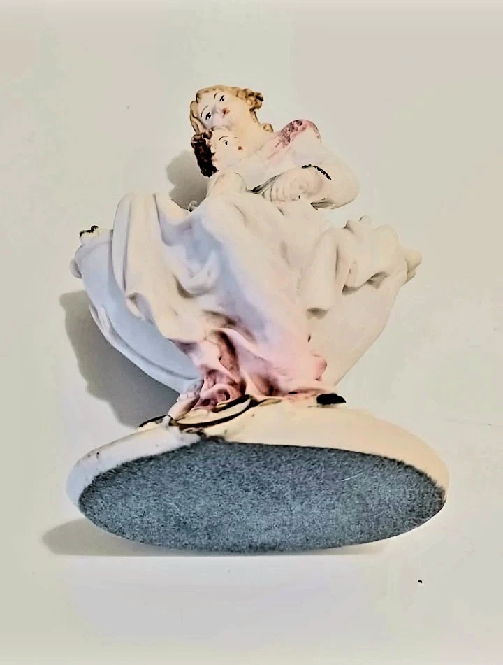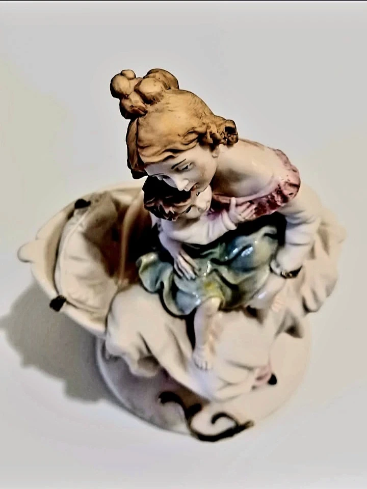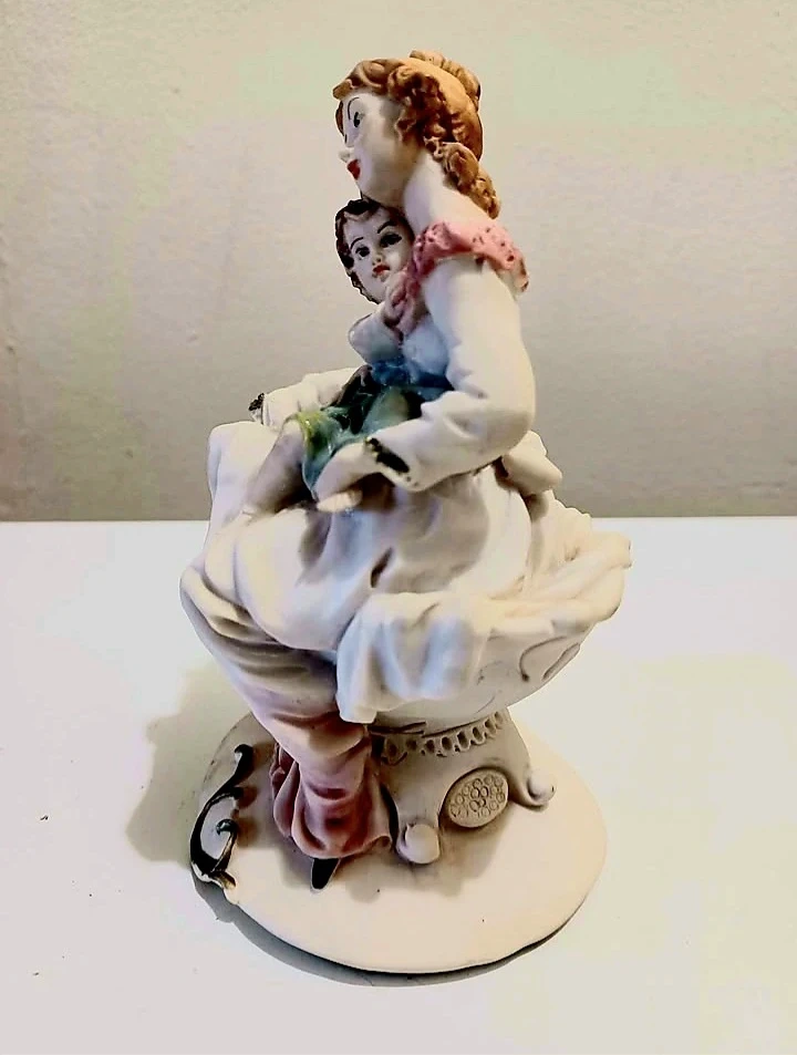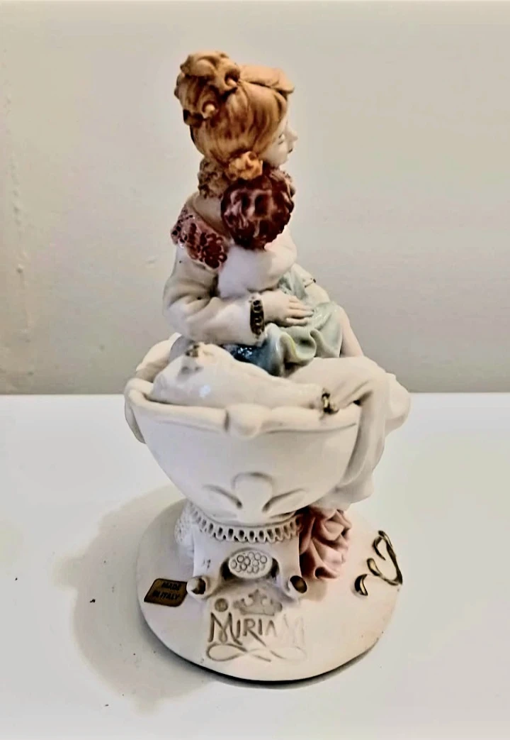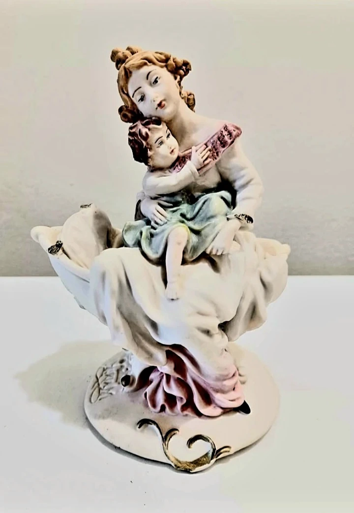 Vintage, Rare beautiful, Miriam Italian Capodimonte porcelain figurine depicting a mother and child, showcasing exquisite detail and craftsmanship.