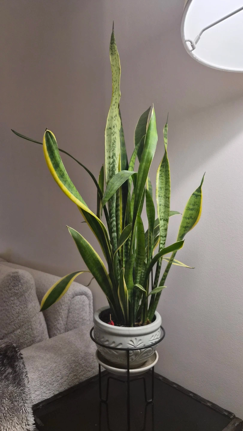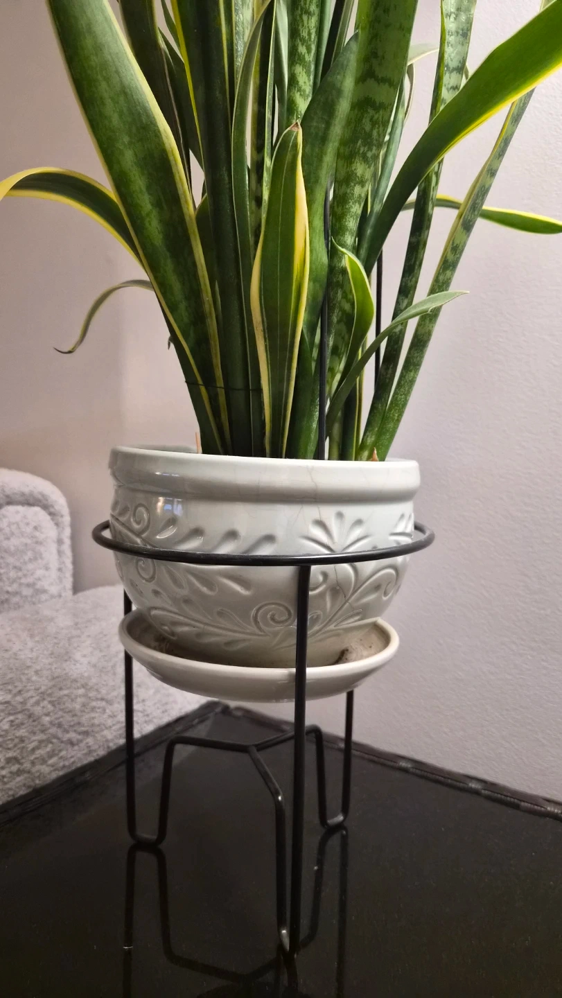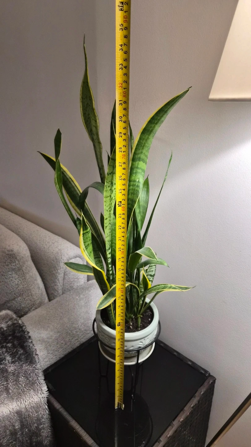 I'm selling a lovely and healthy snake plant potted in a decorative pot with a stand. The plant measures approximately 35 inches tall, making it a great addition to any room! It's a low-maintenance plant that adds a touch of greenery to your space