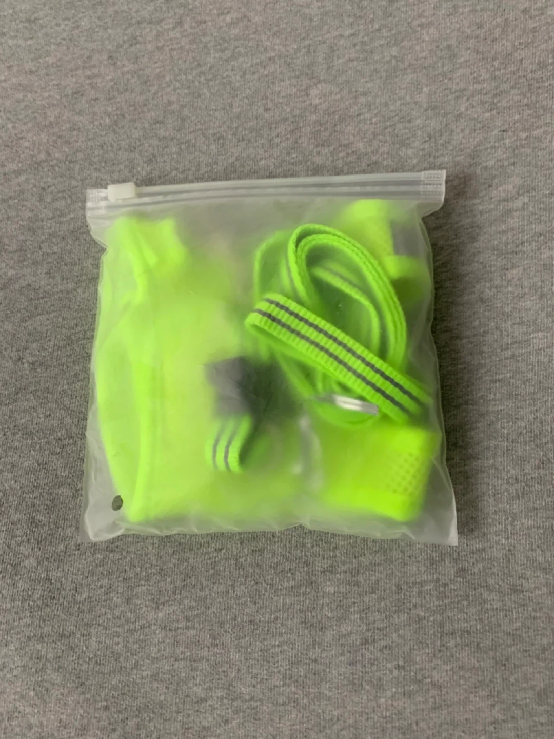 Fluorescent vibrant neon green colour. Perfect for small dogs or puppies. Comes with both the harness and matching leash.