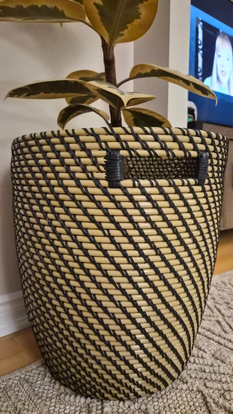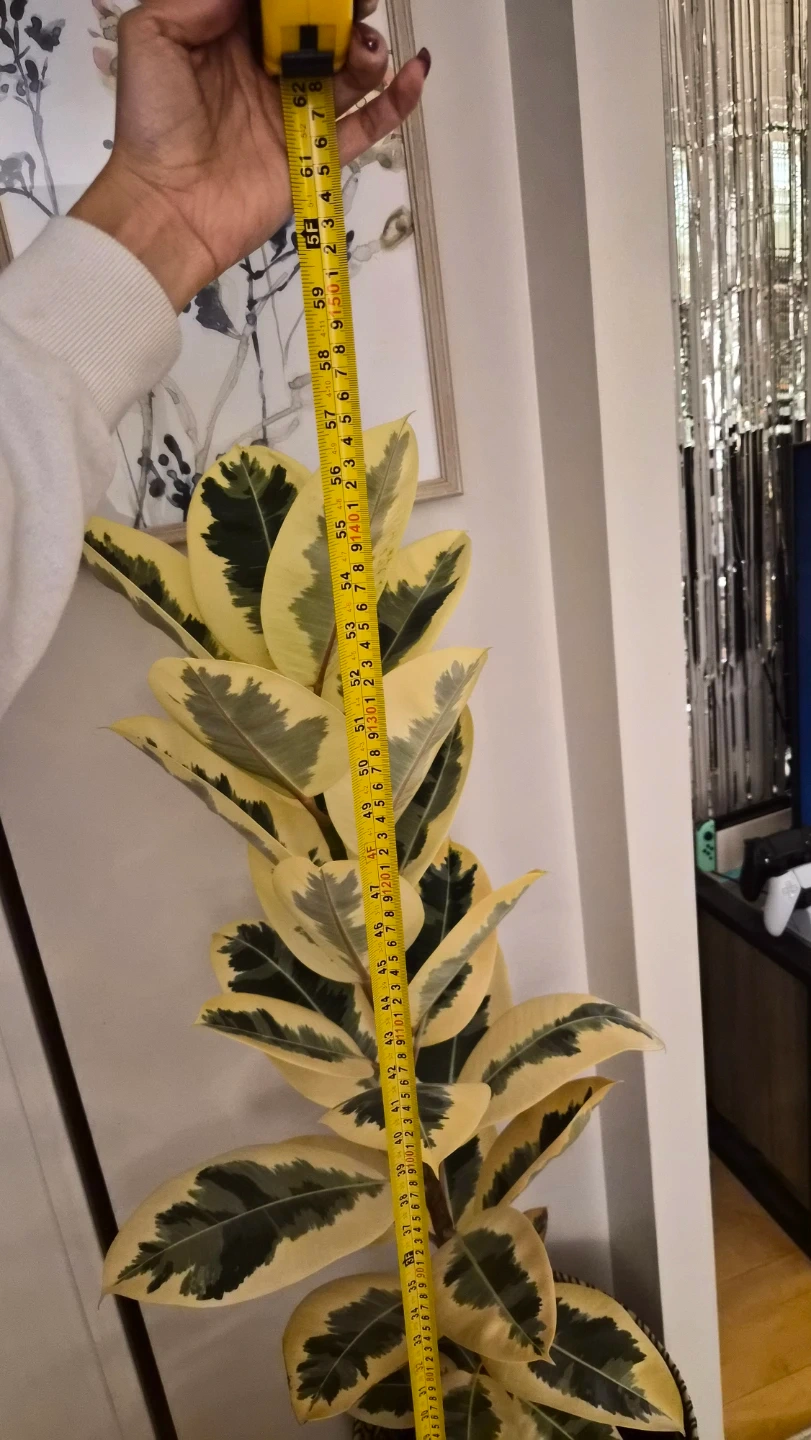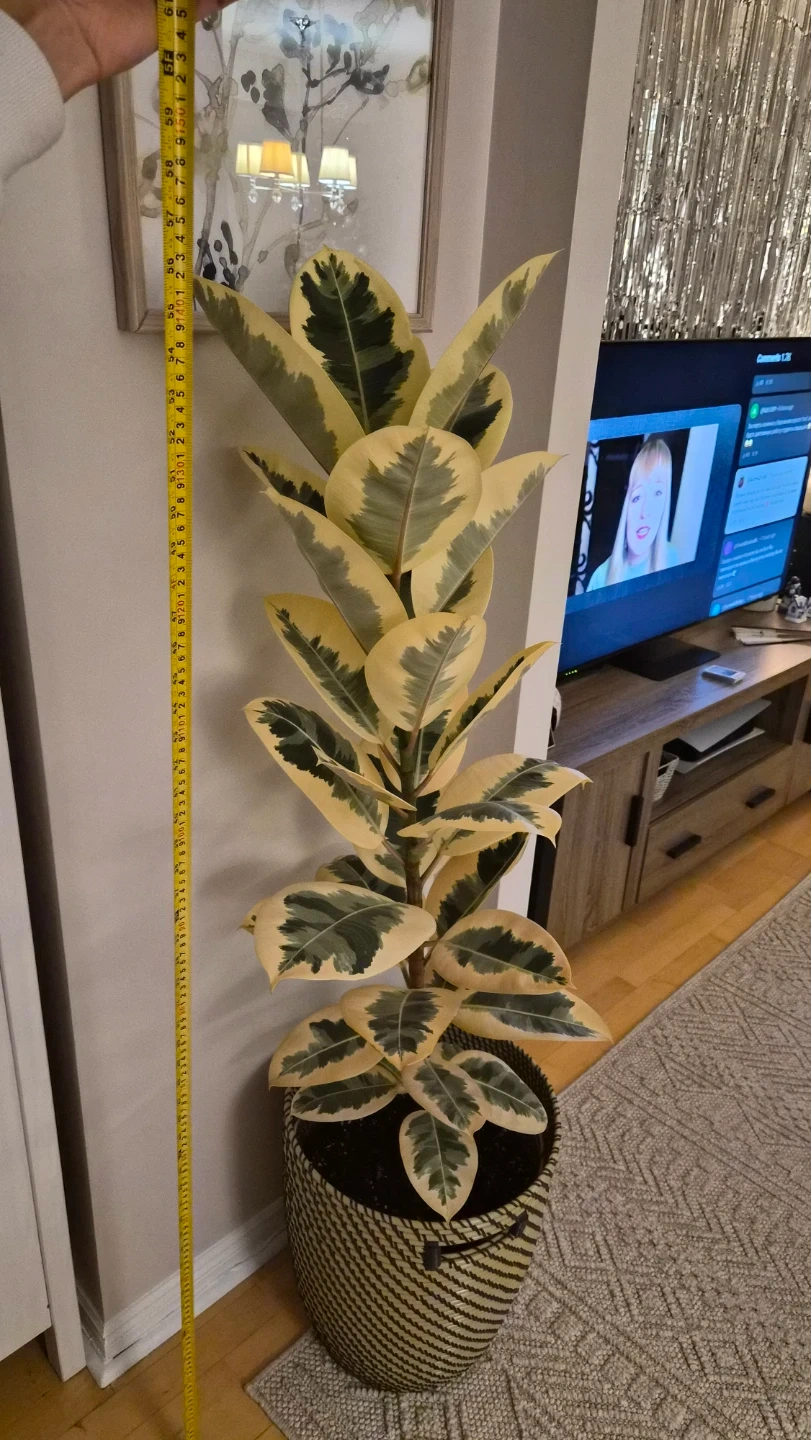 Selling a beautiful Ficus Elastica Variegata plant! It stands approximately 5 feet tall and would make a great addition to any room. The leaves have a lovely variegated pattern with shades of green and cream.