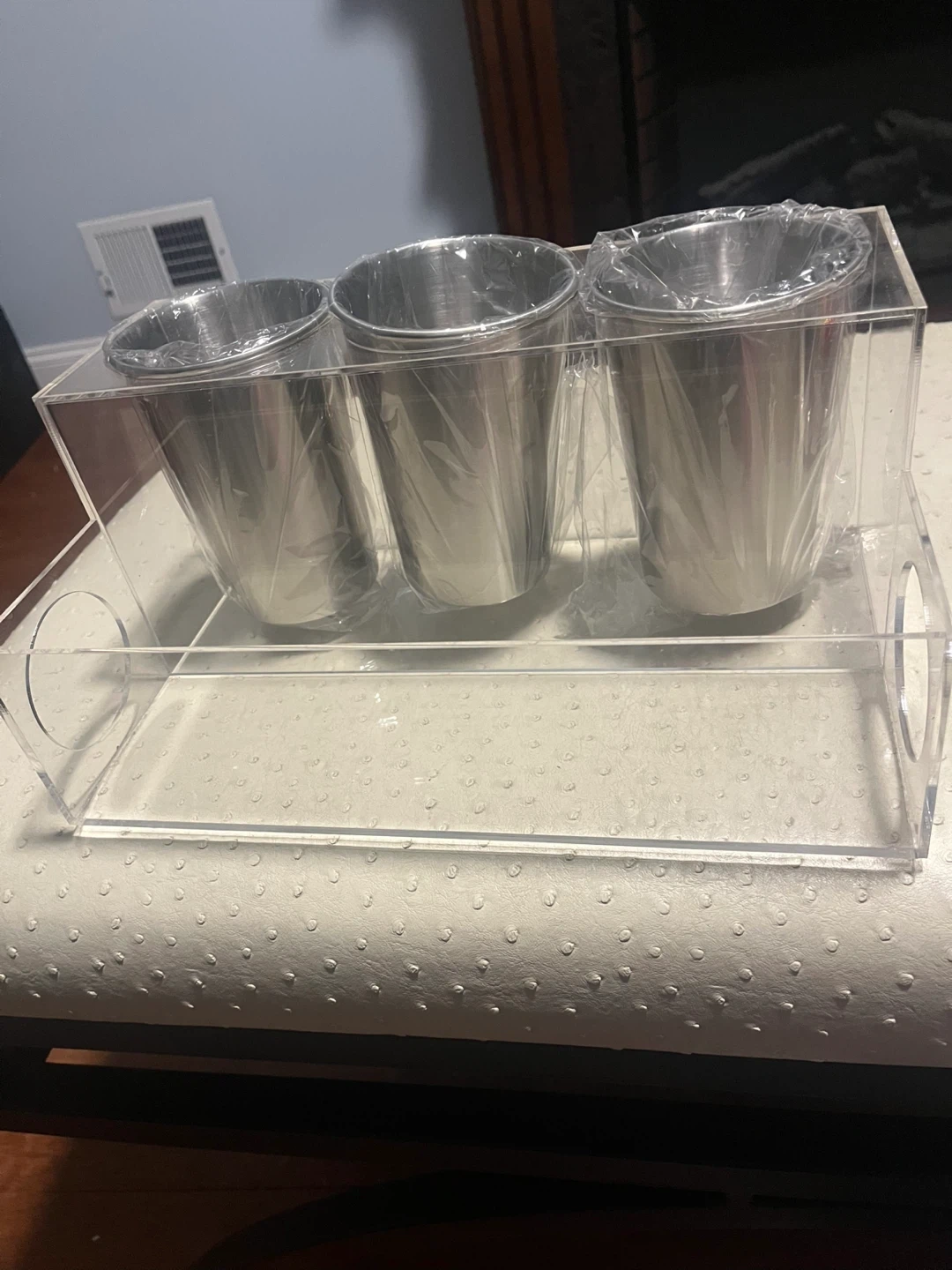 Selling a HiiMEEI clear acrylic hair tool organizer. It's perfect for keeping your bathroom countertop neat and tidy. It can hold a hair dryer, makeup, flat irons, curling irons, and other toiletries. The organizer is in great condition and ready for a new home!