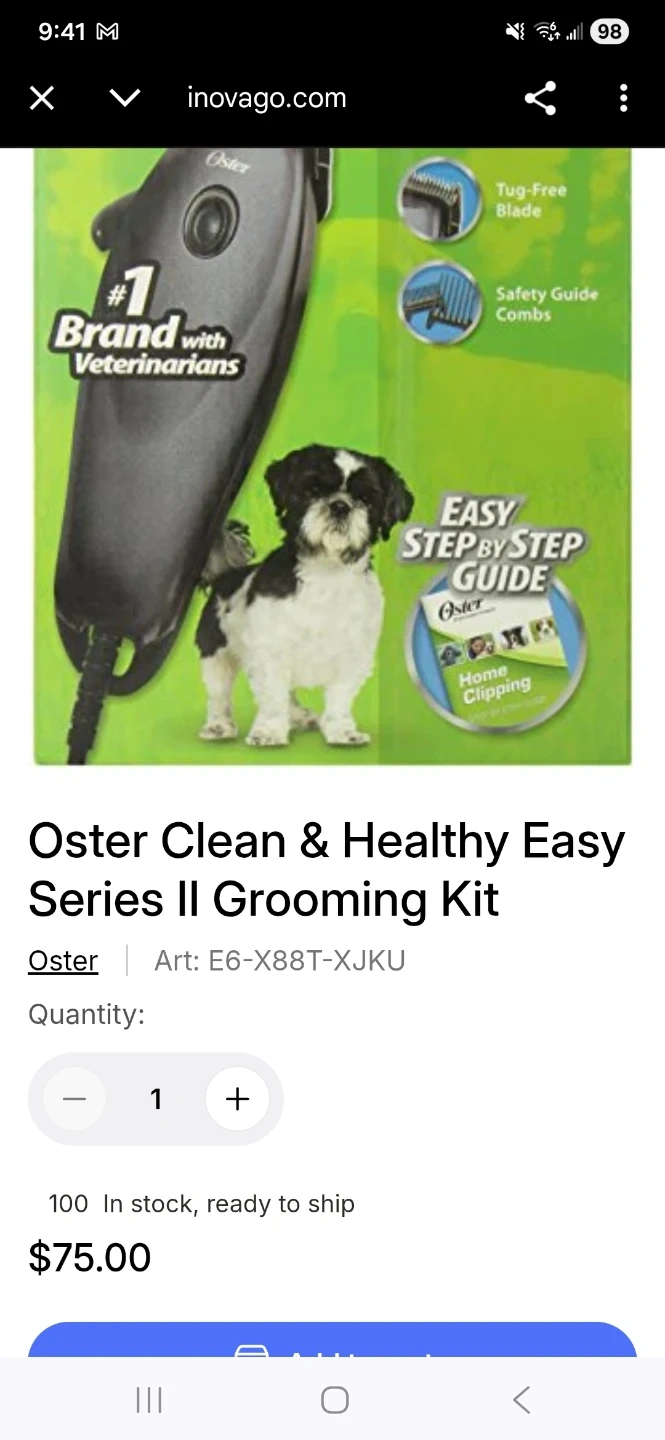 Selling a brand new Oster Easy Series pet grooming kit! This kit is designed with features such as a new dog groomer in mind, safety guide, and easy step-by-step design. It includes accessories like the Pro Trimmer, Easy Snips x2, Power Advanced x4, and Advanced x4. Keep your pet looking its best year-round with this handy kit!