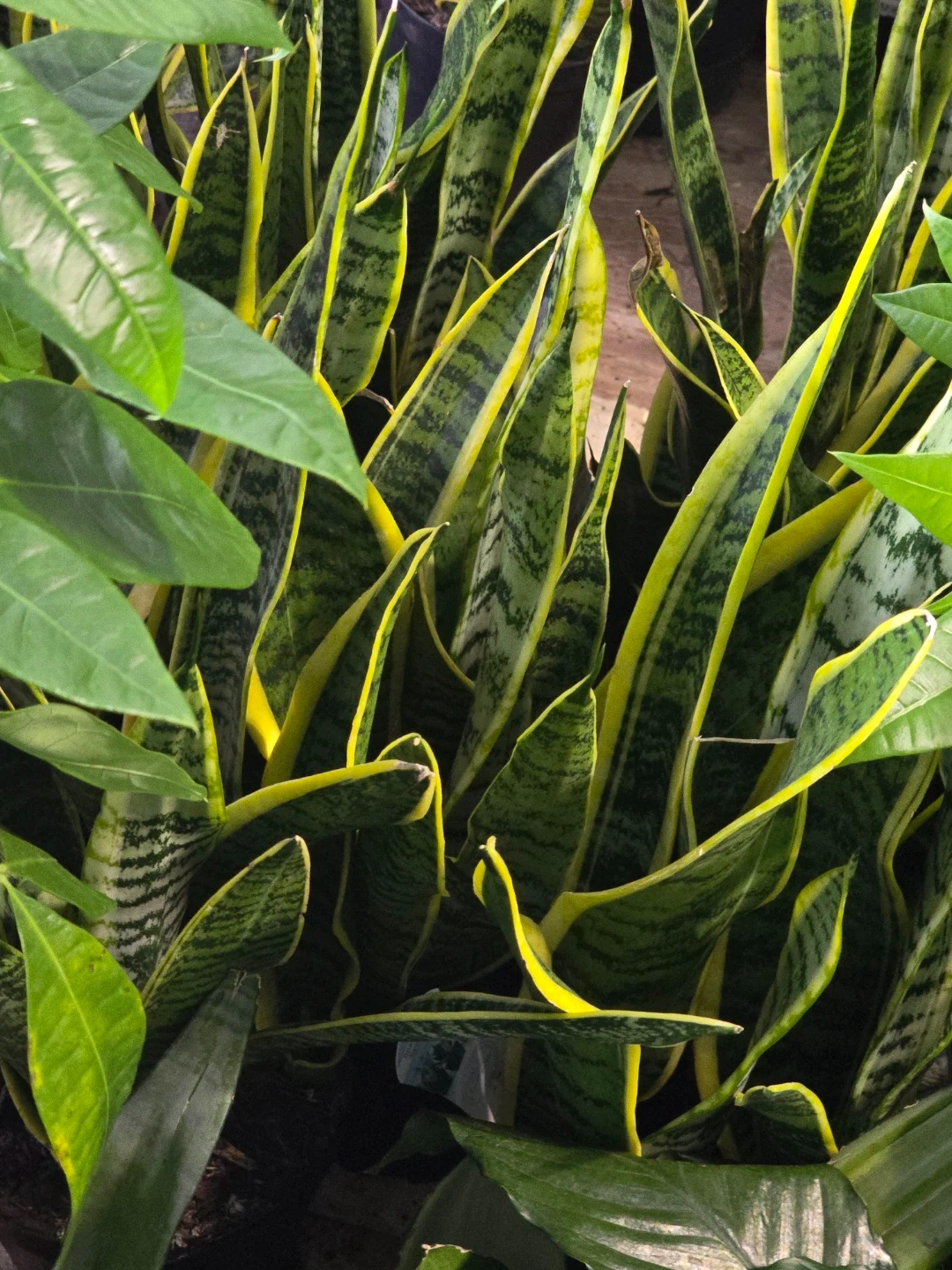 Selling a Costa Farms snake plant. The plant is green and yellow and comes in a black pot. It's a great way to add some greenery to your home!