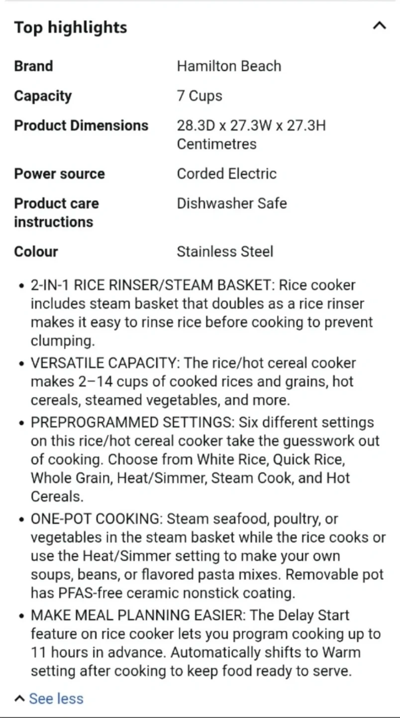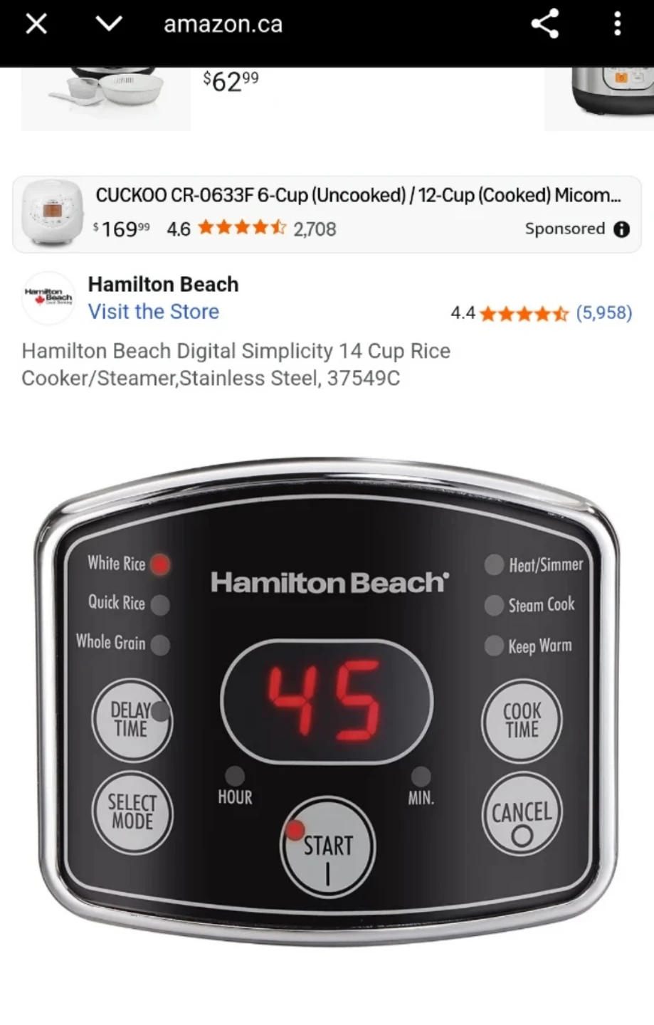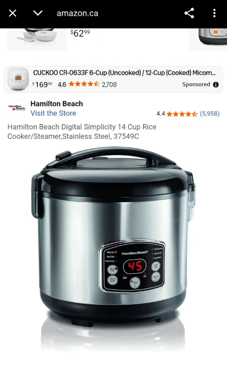 Selling a Hamilton Beach Digital Simplicity rice cooker and food steamer. It has a 4-20 cup food capacity. Includes the manual.