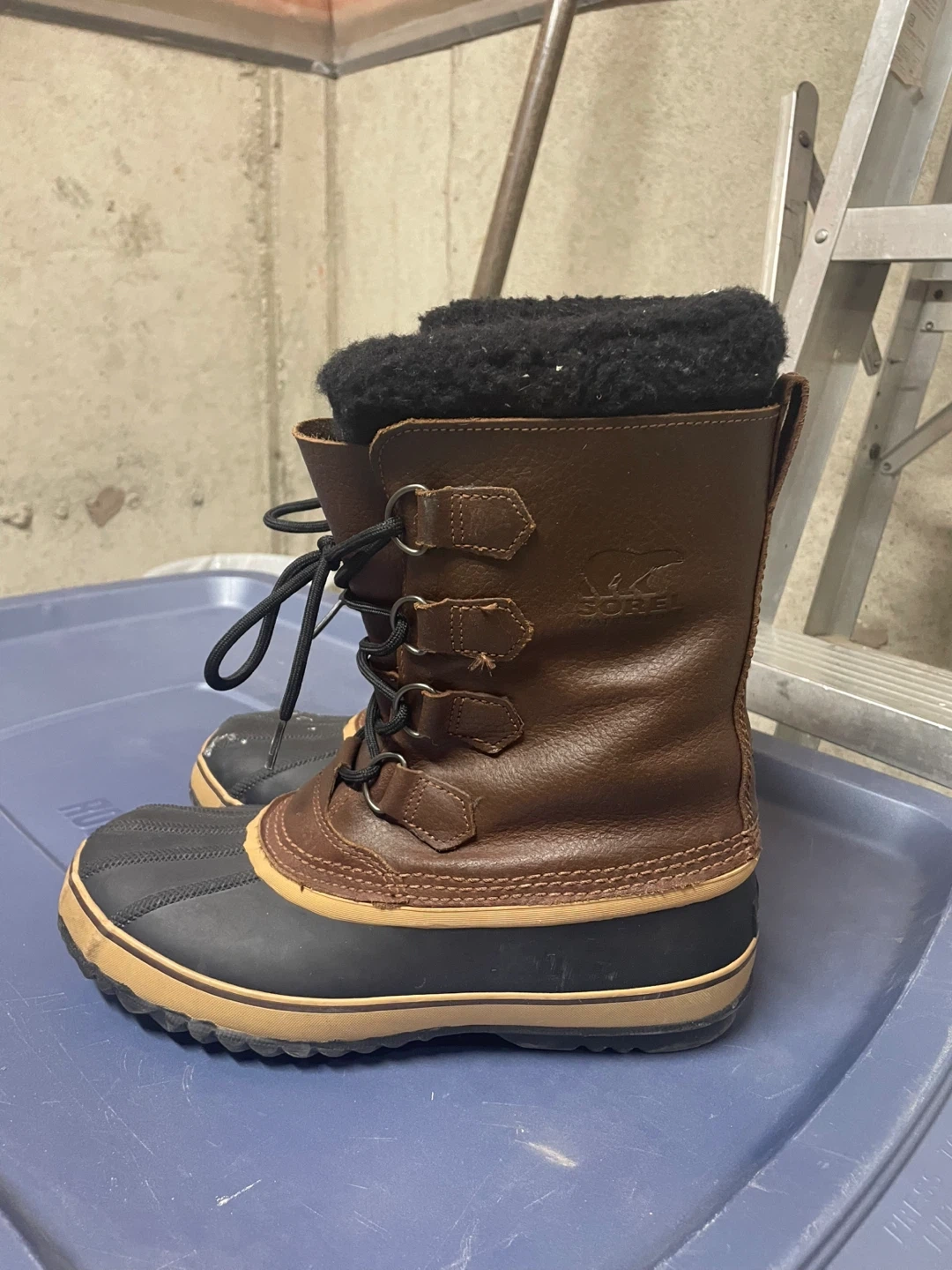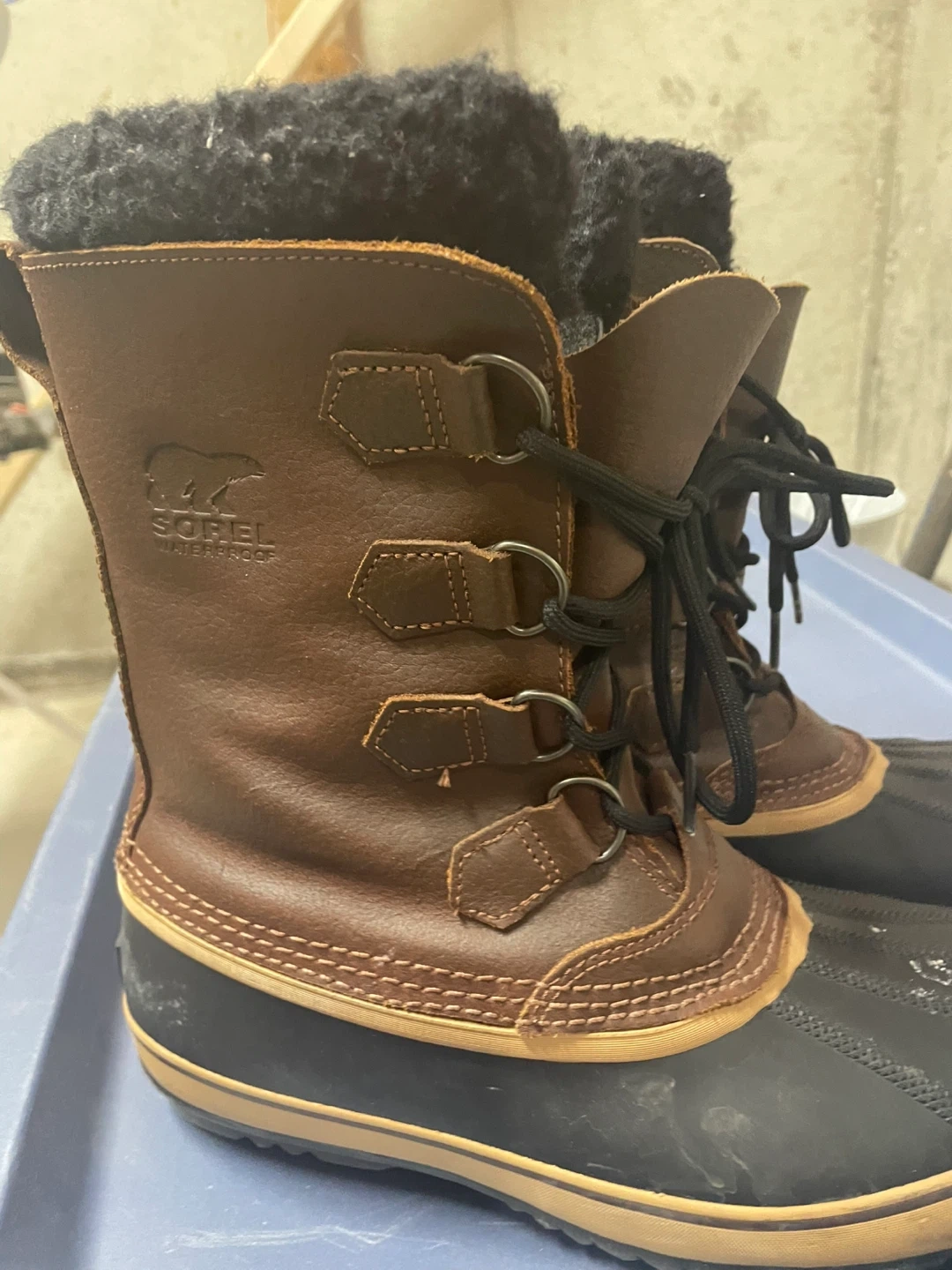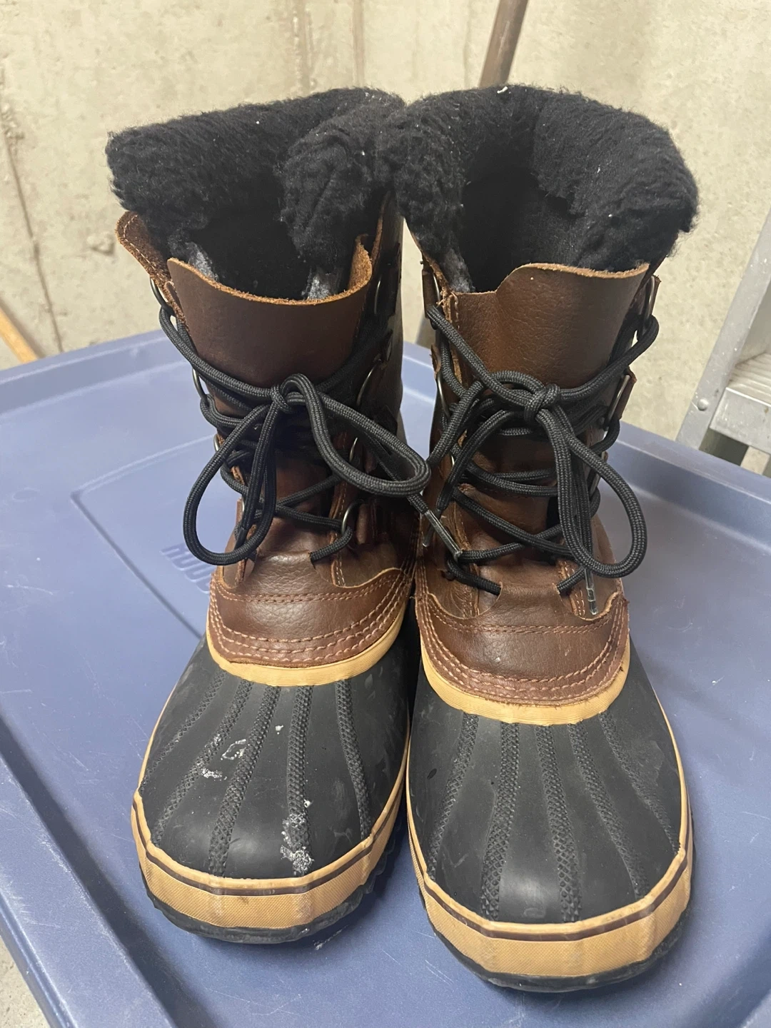 Selling a pair of Sorel Men's Caribou boots in size 9. These boots are waterproof and perfect for Canadian winters! They show some signs of wear, but are still in good condition and ready to keep your feet warm and dry.
