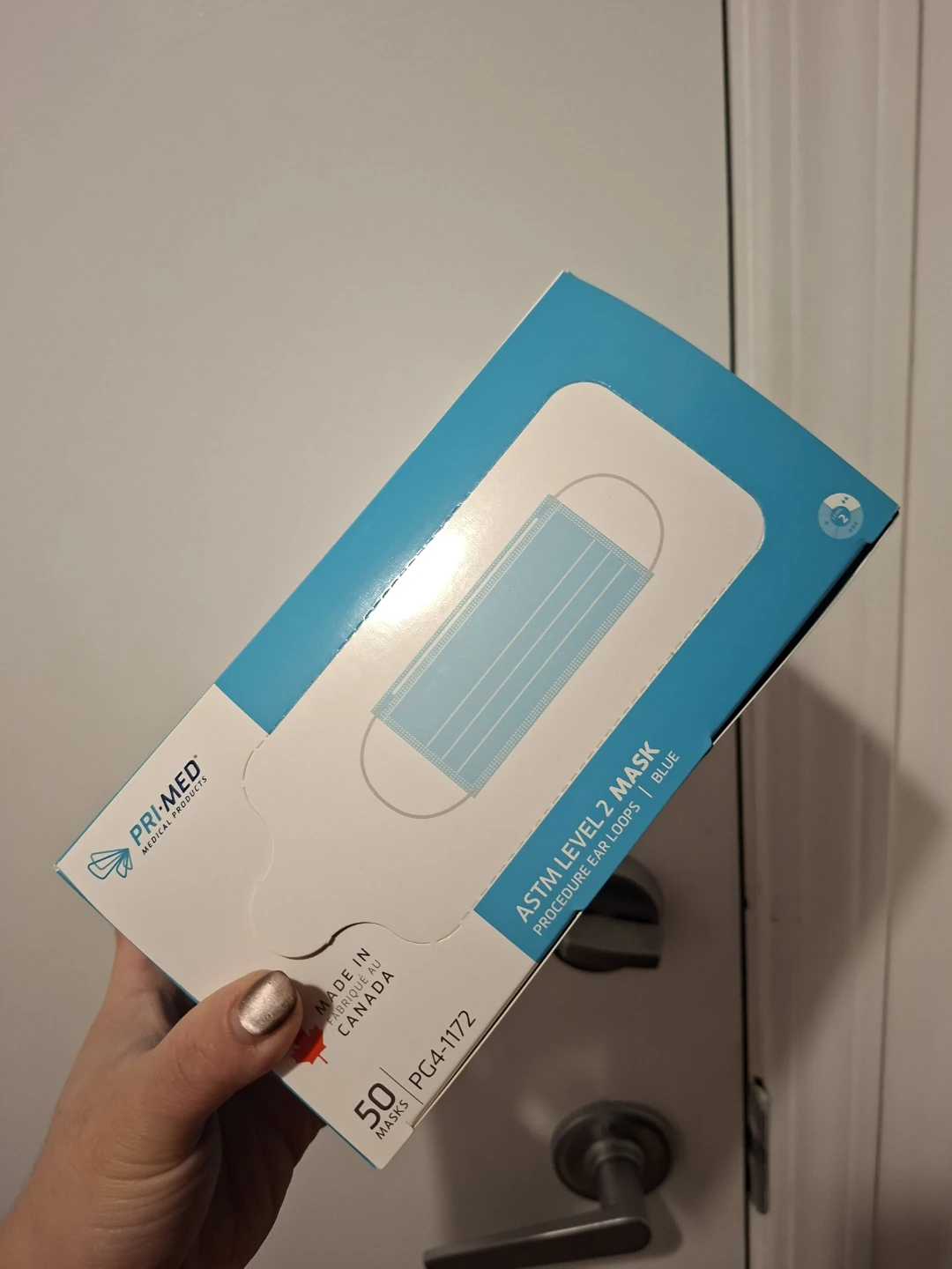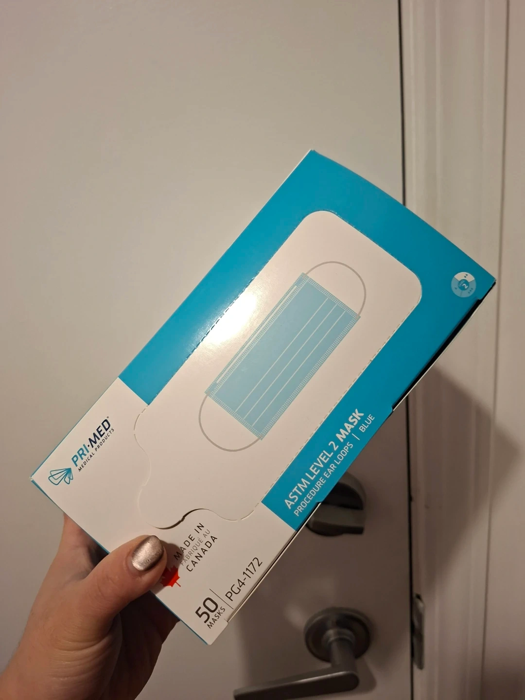 Selling a brand new, unopened box of Primed ASTM Level 2 masks. Each box contains 50 masks with procedure ear loops in blue. Expiry date is 2026 September.