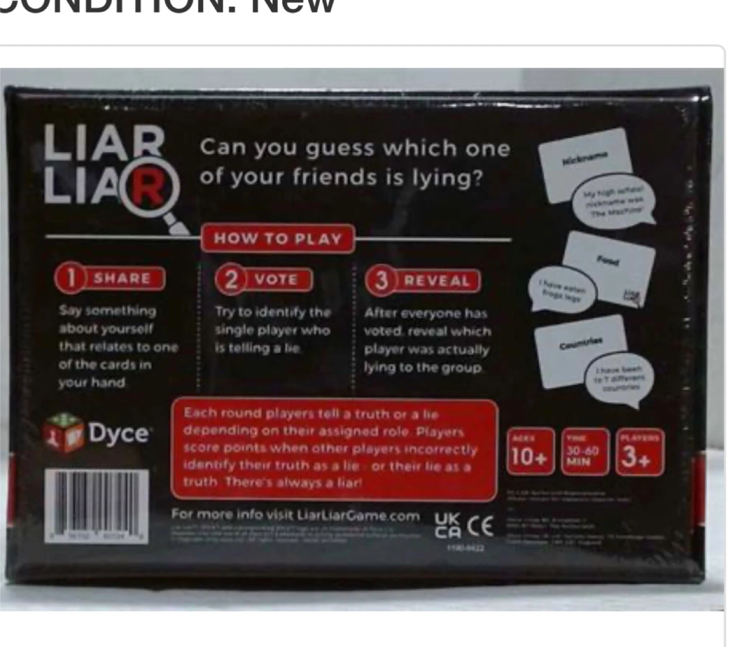 Selling a Liar Liar board game. It is the game of truth and lies!