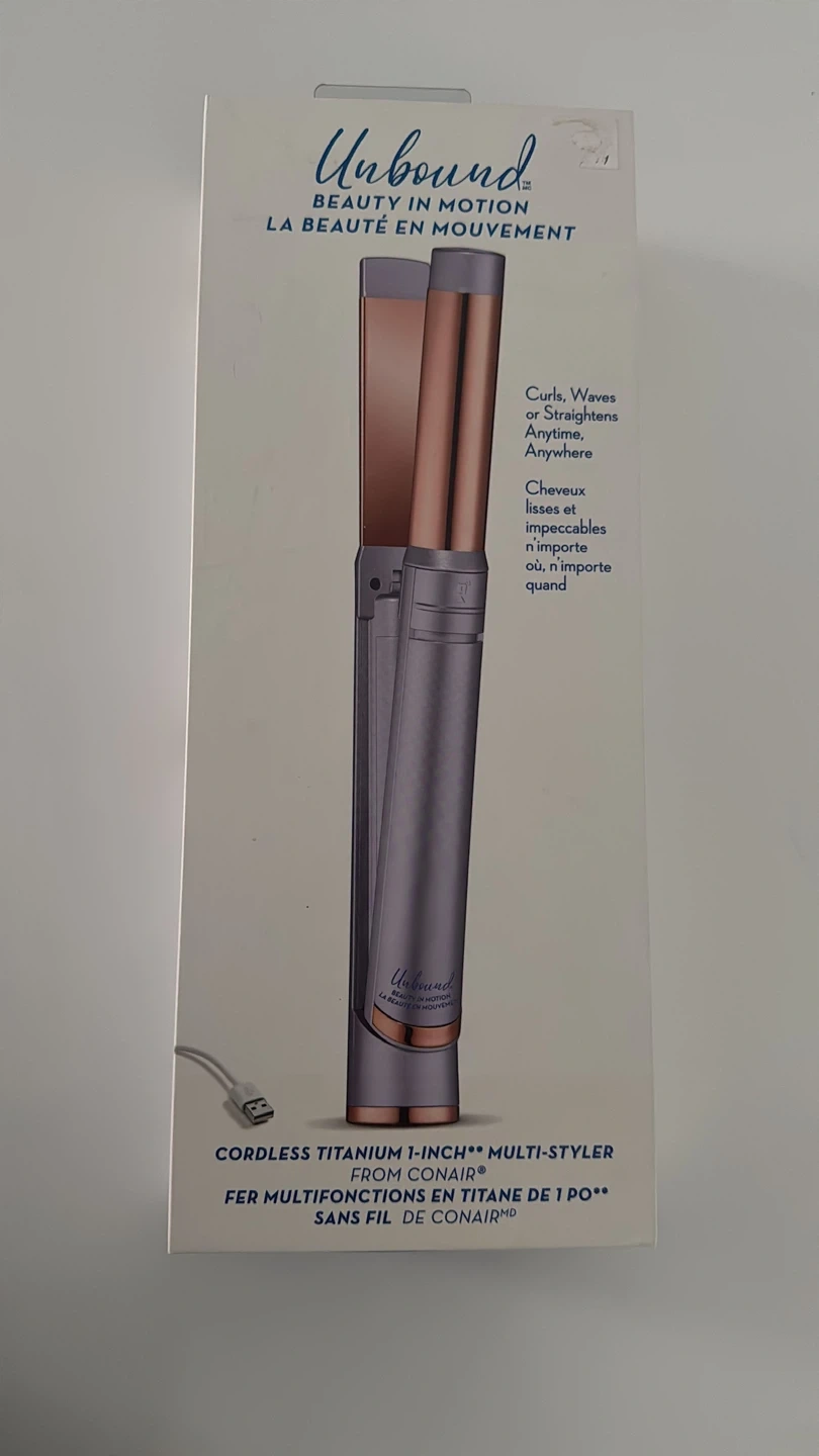 I'm selling a Conair Unbound Cordless Titanium Multi-Styler. It's a 2-in-1 styler for curls or straight styles anytime, anywhere. It has a cordless titanium 1-inch multi-styler. The box is included!