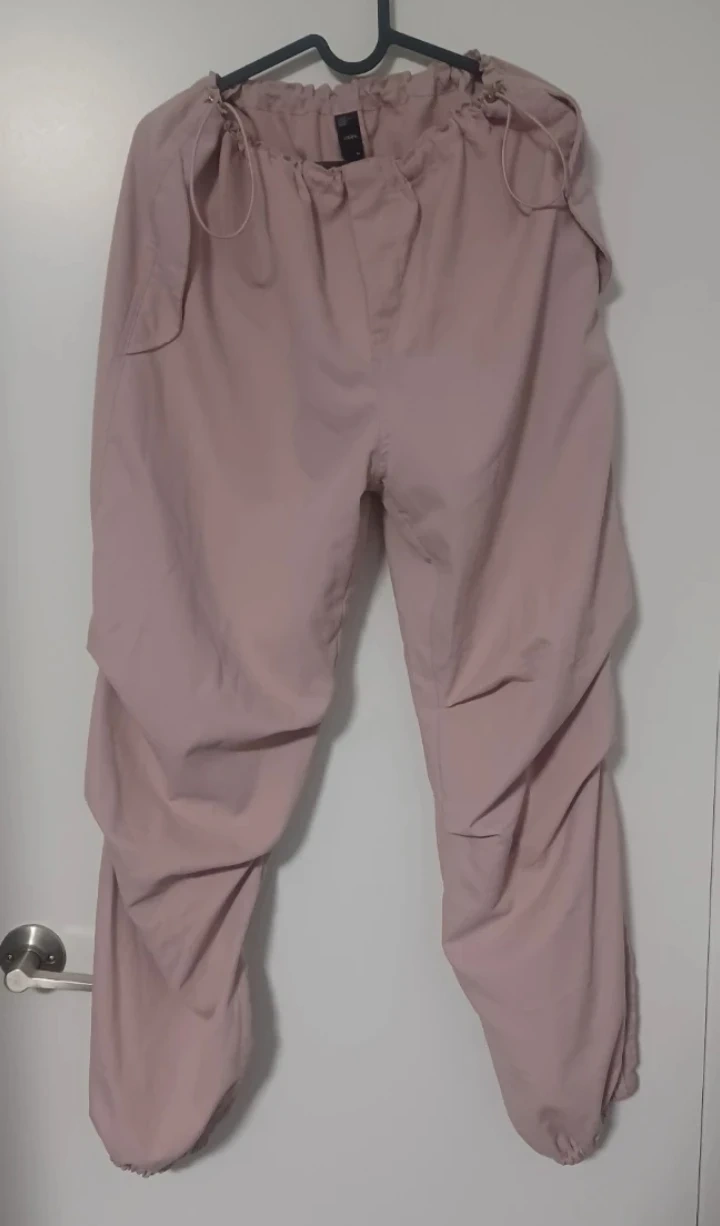 Selling a pair of pink drawstring pants. They're in great condition and ready for a new owner! The pants feature a comfortable drawstring waist, snap closure side front pockets and carge style back pocket. Perfect for casual wear